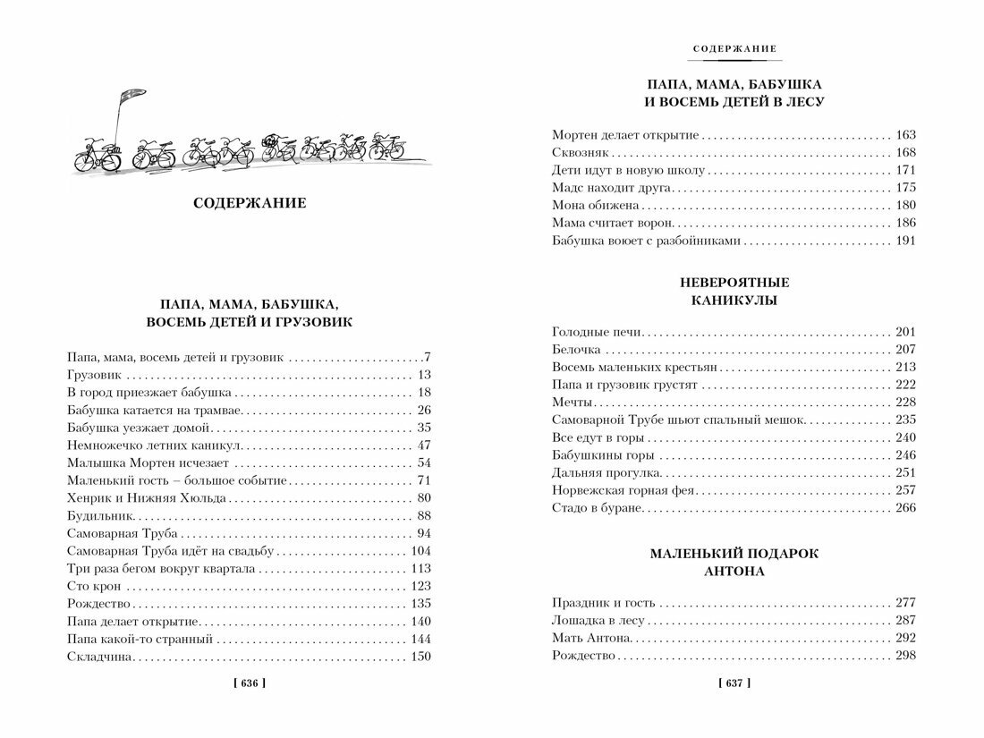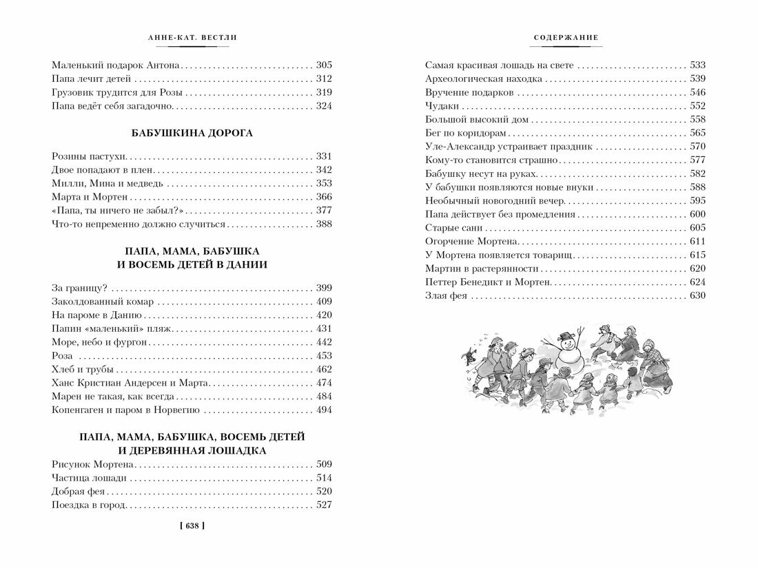 Анне-Кат. Вестли известная писательница, которую ласково называют Бабушкой всех норвежских детей. Это неудивительно, ведь её произведения уже несколько десятков лет дарят читателям море смеха и радости, погружают в атмосферу семейного тепла и любви, а также показывают, насколько важна забота и поддержка со стороны близких. Жизнь в большой семье всегда приключение. А что, если в этой семье живёт восемь детей, да ещё и в одной комнате? Здесь точно не обойтись без забавных повседневных ситуаций, совместных захватывающих историй и мудрых уроков! В сборник вошли следующие повести / Читайте в этом сборнике следующие повести: Папа, мама, бабушка, восемь детей и грузовик Папа, мама, бабушка и восемь детей в лесу Невероятные каникулы Маленький подарок Антона Бабушкина дорога Папа, мама, бабушка и восемь детей в Дании Папа, мама, бабушка, восемь детей и деревянная лошадка