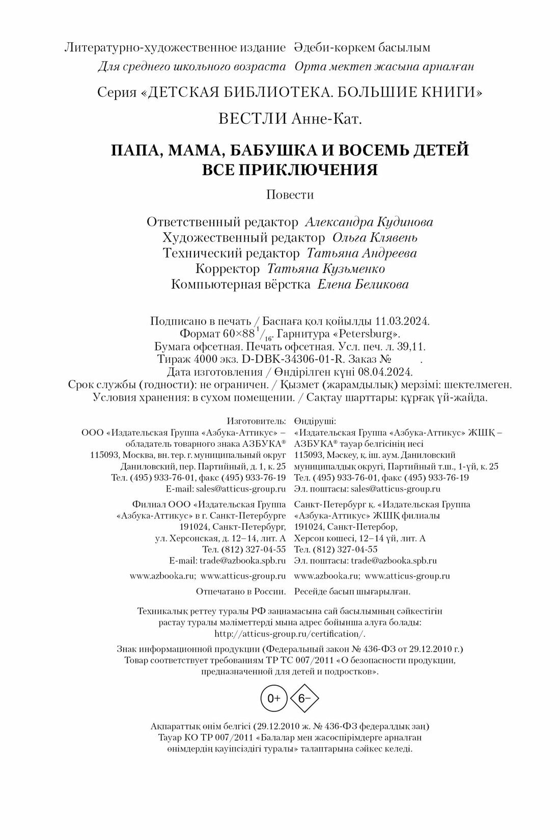 Папа мама бабушка и восемь детей Все приключения (Вестли Анне-Катарина); Азбука, 2024