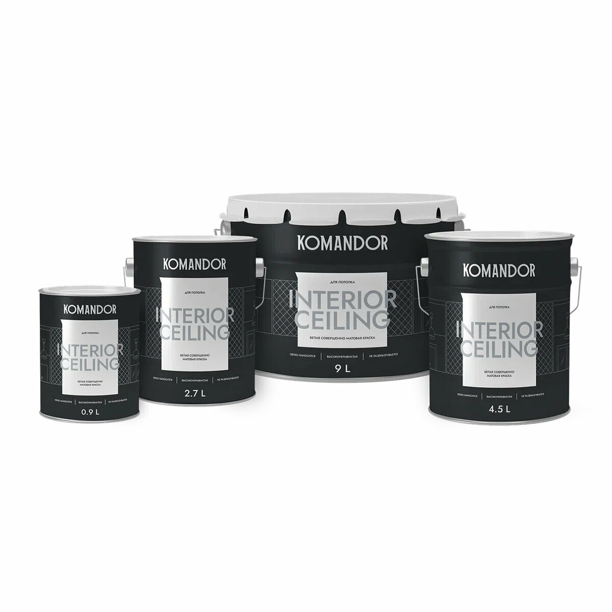 Матовая краска для потолка KOMANDOR Interior Ceiling белая 9 л.