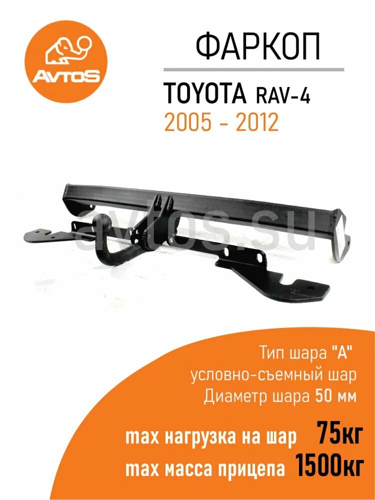 Фаркоп AvtoS на Toyota RAV-4 2009-2012 тип крюка "A" г/в.н. 1500/75кг TY 23
