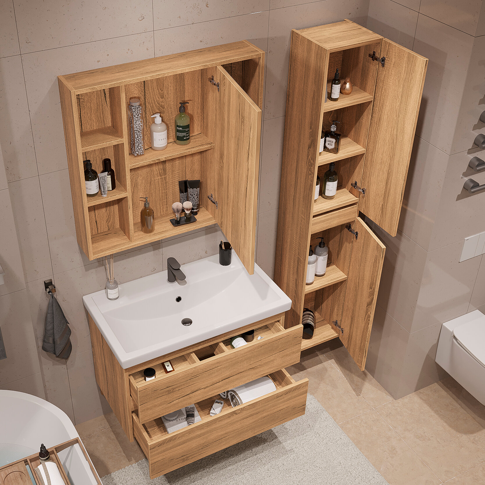 Зеркало-шкаф Sanstar Lavanti 80 дуб вотан великолепно впишется в дизайн любой ванной комнаты, будь то компактная ванная в многоэтажном доме или большой санузел в загородном коттедже.