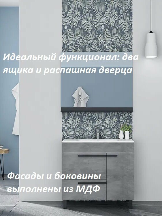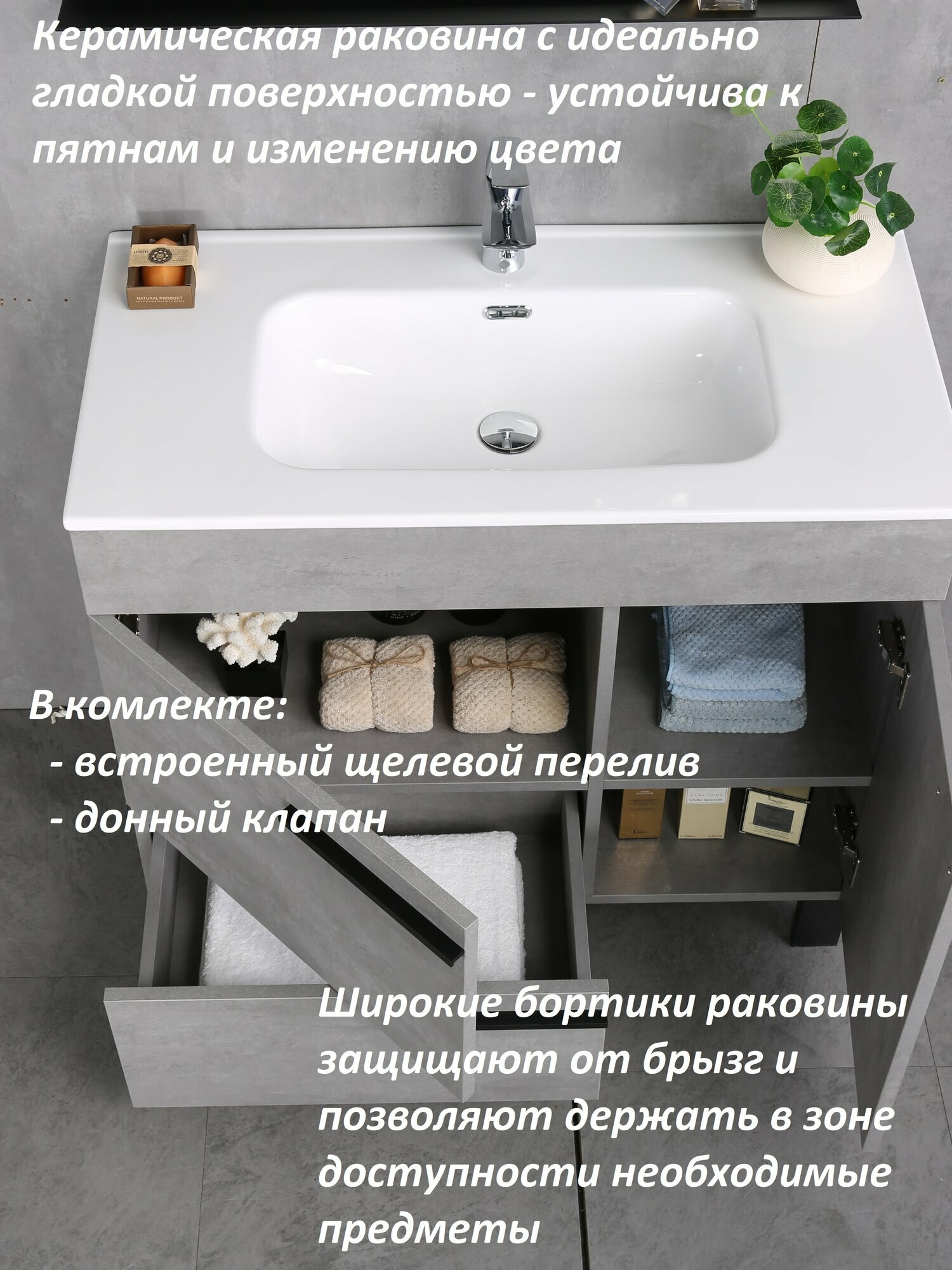 Тумба с раковиной PARLY Spa Gill 70 напольная цеметно-серый Gill70