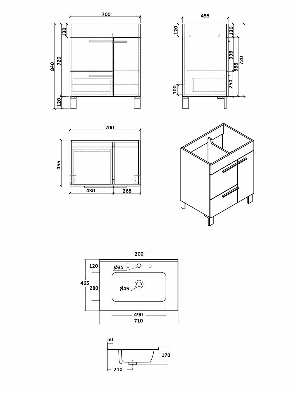 | Дополнительная информация | Металлическая ручка матового черного цвета в виде полосы. Направляющие и петли DTC с демпфированием и плавным закрытием (бесшумные при открытии или закрытии, с доводчиком, с полным выдвижением). |