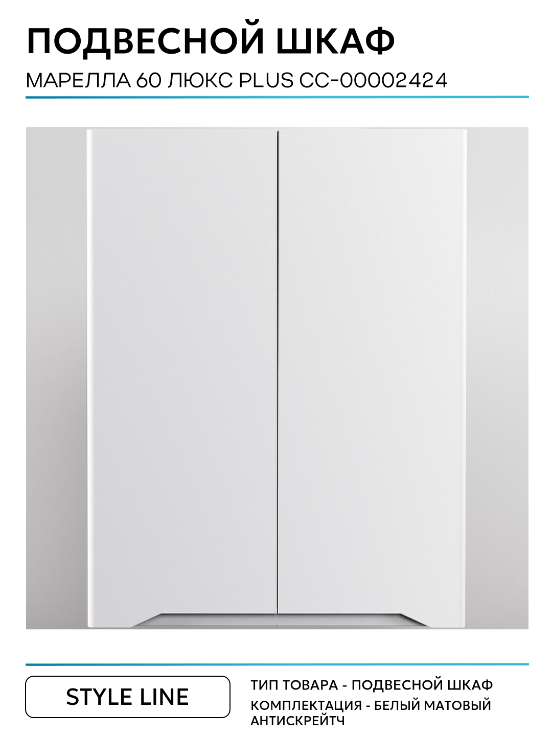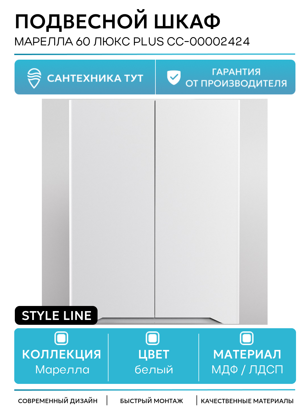 Шкаф Style Line Марелла 60 Люкс Plus подвесной белый матовый Марелла СС-00002424