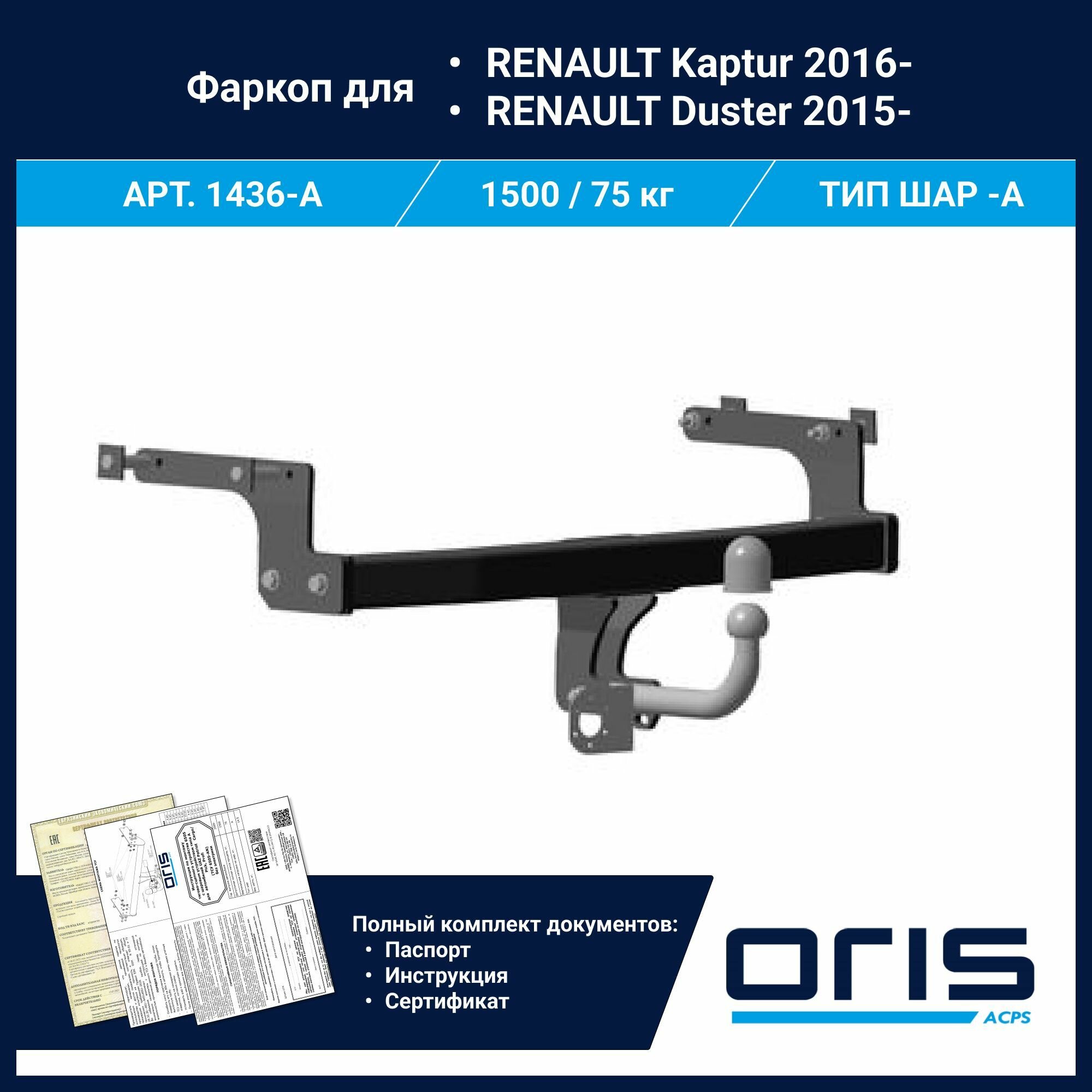 Фаркоп Bosal Renault Kaptur 2016->... г/в.н. 1500/75 1436-A