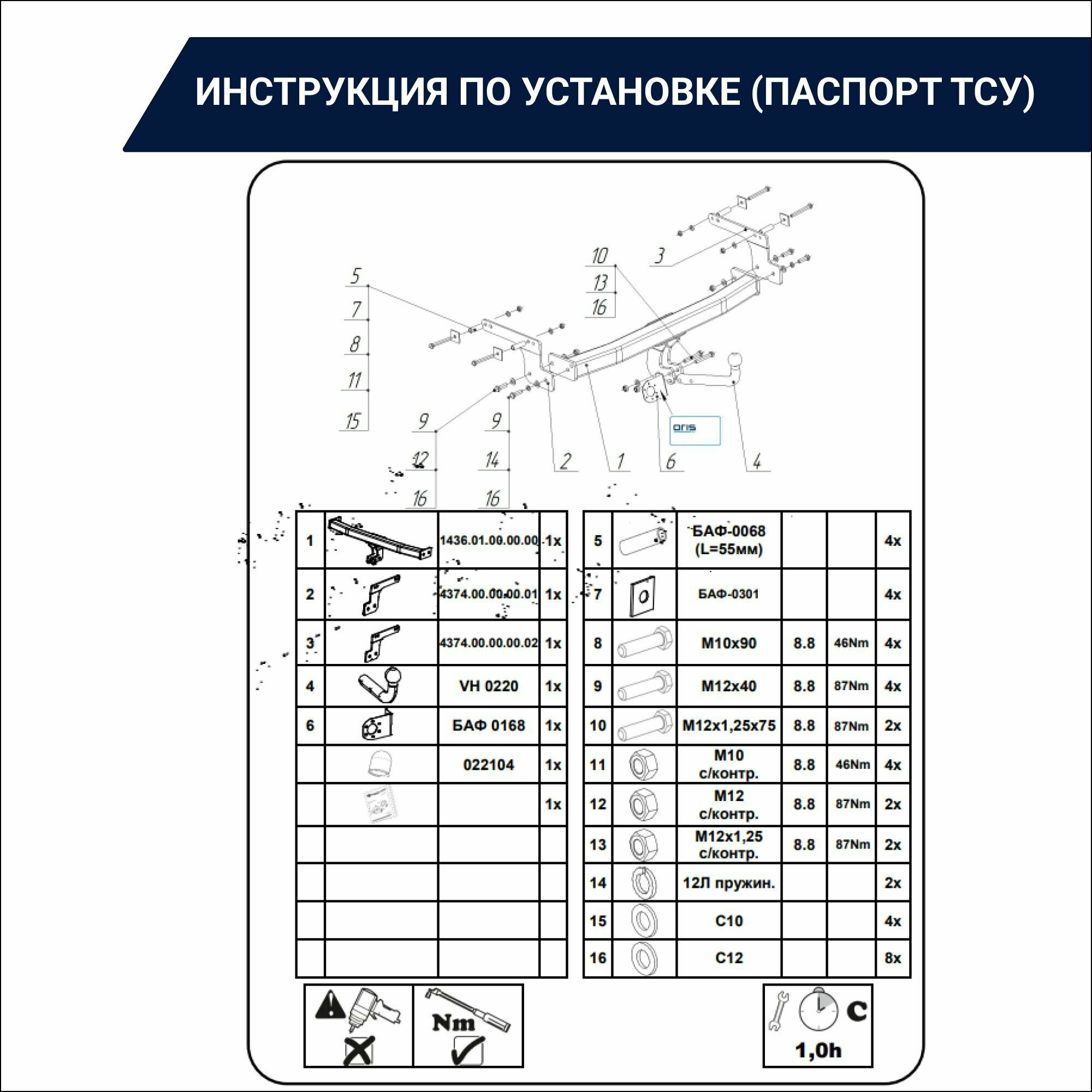 | Состав комплекта | балка ТСУ, шар, кронштейн левый, кронштейн правый, монтажный комплект |