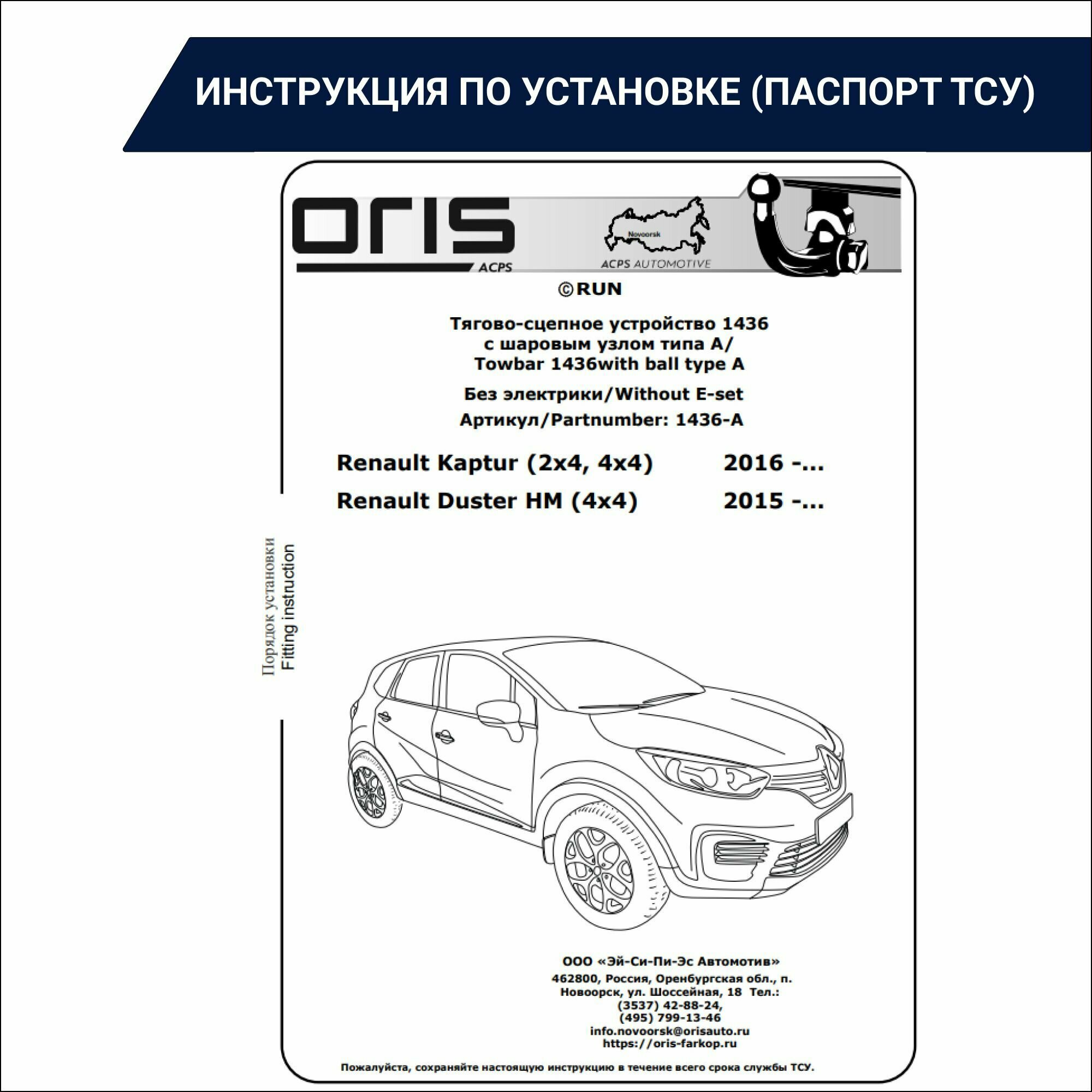 - Renault Duster / Renault Kaptur Установка ТСУ (Фаркоп)