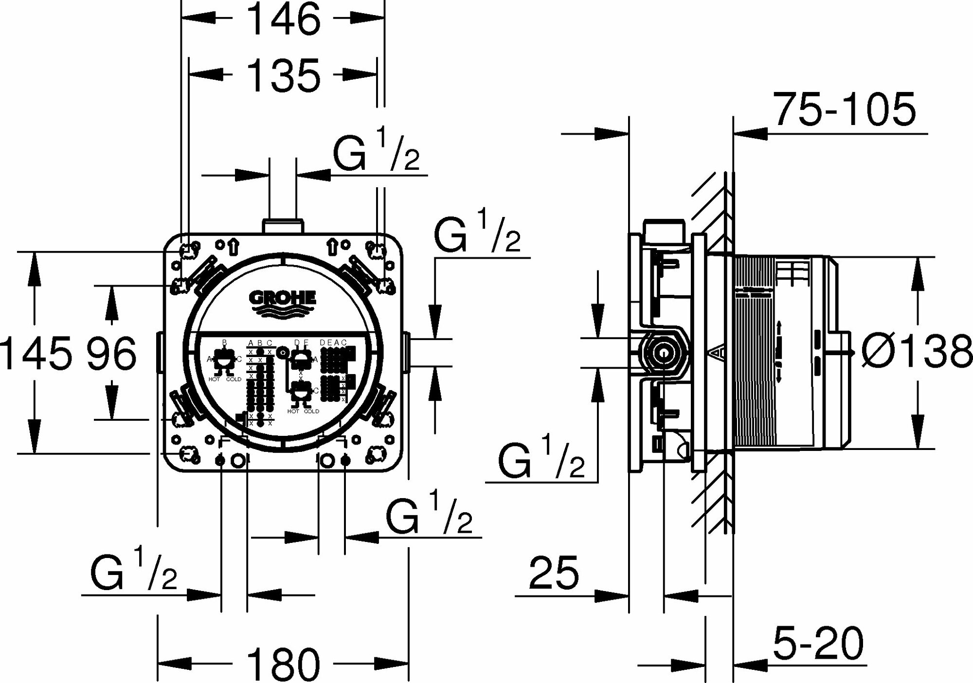 Встраиваемая часть термостатического #смесителя GROHE Rapido SmartBox 35600000