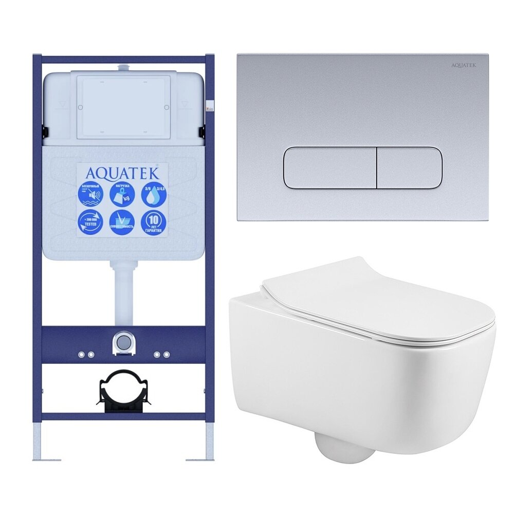 Подвесной унитаз с инсталляцией и кнопкой Акватек Вега SET AQUATEK ВЕГА cmp-016 безободковый, с крышкой микролифт, белый, кнопка хром