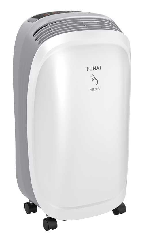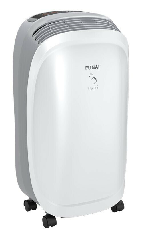 Funai (Фунаи) представляет собой модель компактного осушителя воздуха, подходящего для небольших помещений частных домов или квартир. Имеет производительностью 10 л/сутки. Он оснащен удобной панелью управления, с помощью которой можно настроить уровень влажности, скорость обдува, включить/выключить таймер.