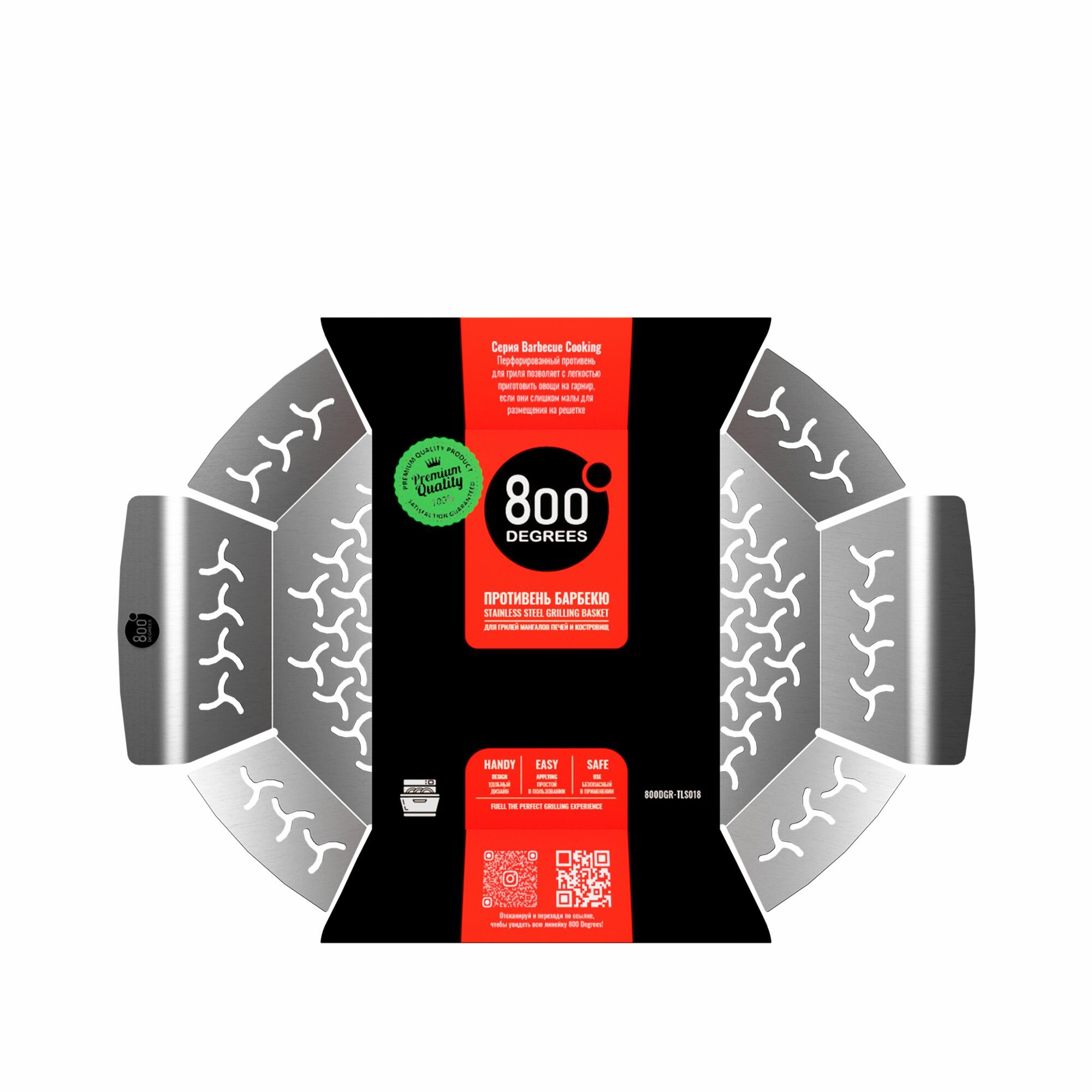 Противень-корзина квадратного формата от бренда 800 Degrees предназначена для приготовления вкусных блюд. Изготовлен из высококачественной стали, обладает прочными характеристиками. Специальное плетение дна обеспечивает равномерный прогрев и запекание продуктов. Удобные ручки позволяют уверенно манипулировать противнем во время приготовления. Размеры корзины идеально подходят для различных видов продуктов, делая процесс гриллинга еще более эффективным и удобным.Перфорированный противень-корзина для гриля позволяет с легкостью готовить овощи на гарнир, если они слишком малы для размещения непосредственно на решетке. Идеален для карамелизации блюд.
