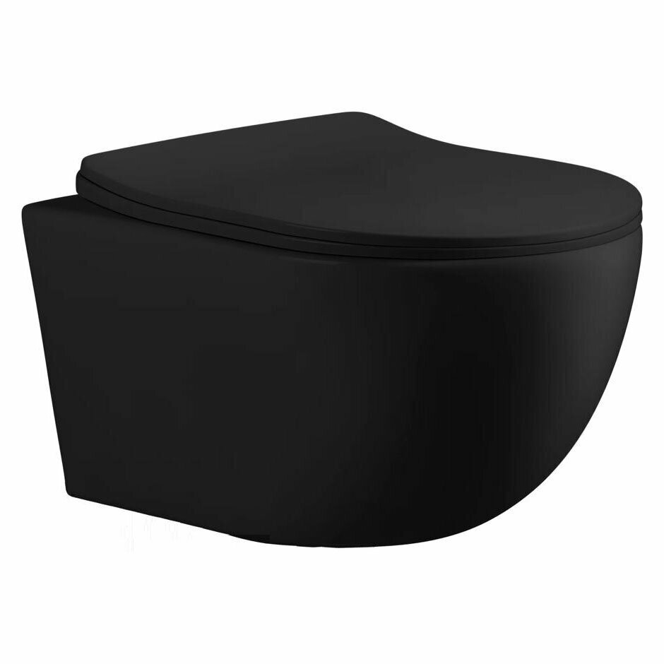 Унитаз подвесной Ceruttispa безободковый с сиденьем микролифт черный матовый Orlter Aria MBF CT10017