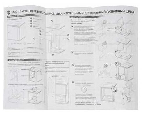 Шкаф коммутационный ЦМО предназначен для размещения активного и пассивного телекоммуникационного оборудования, в офисных и закрытых промышленных помещениях. Модель поставляется в компактной плоской упаковке, имеет разборную конструкцию и состоит из пяти основных частей: крыши, дна, двух передних направляющих, двери, двух съёмных боковых стенок с точечными замками и системы заземления. Возможна комплектация металлической дверью и дверью с тонированным стеклом. Возможна установка двери как с правой, так и с левой стороны. Дверь фиксируется точечным замком.
