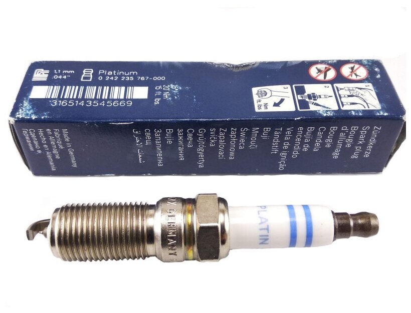 Свечи зажигания Bosch Platinum Plus с напайкой из платины на центральном электроде. За счет использования благородного металла повышается износостойкость и увеличивается срок службы.