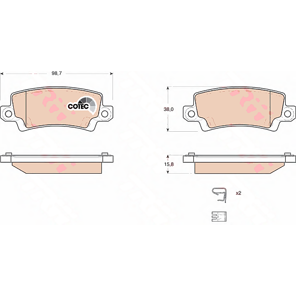 | Дополнительно | Инновационное покрытие тормозных колодок Cotec Звуковое предупреждение износа Металлические прокладки соответствуют оригинальному оборудованию |