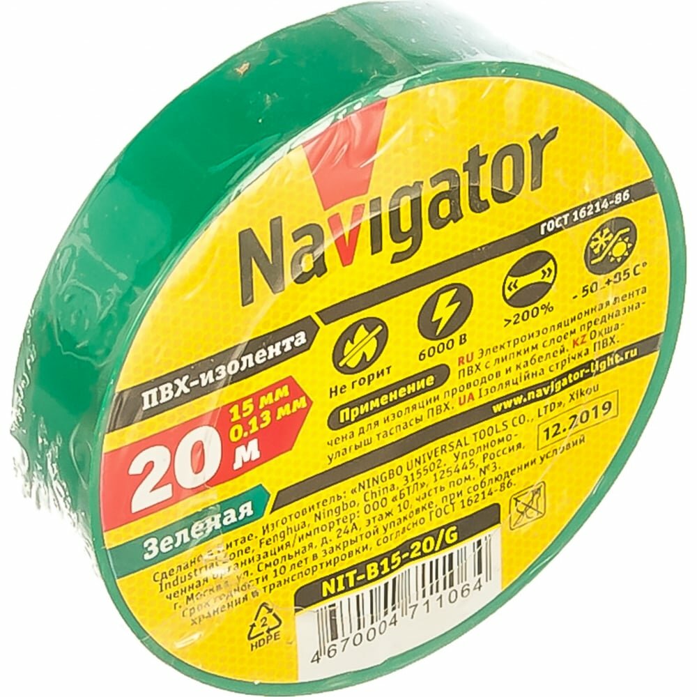 Электроизоляционная лента Navigator серии NIT на основе ПВХ - расходный материал при электротехнических работах, используемый для обмотки проводов и кабелей с целью их электроизоляции.