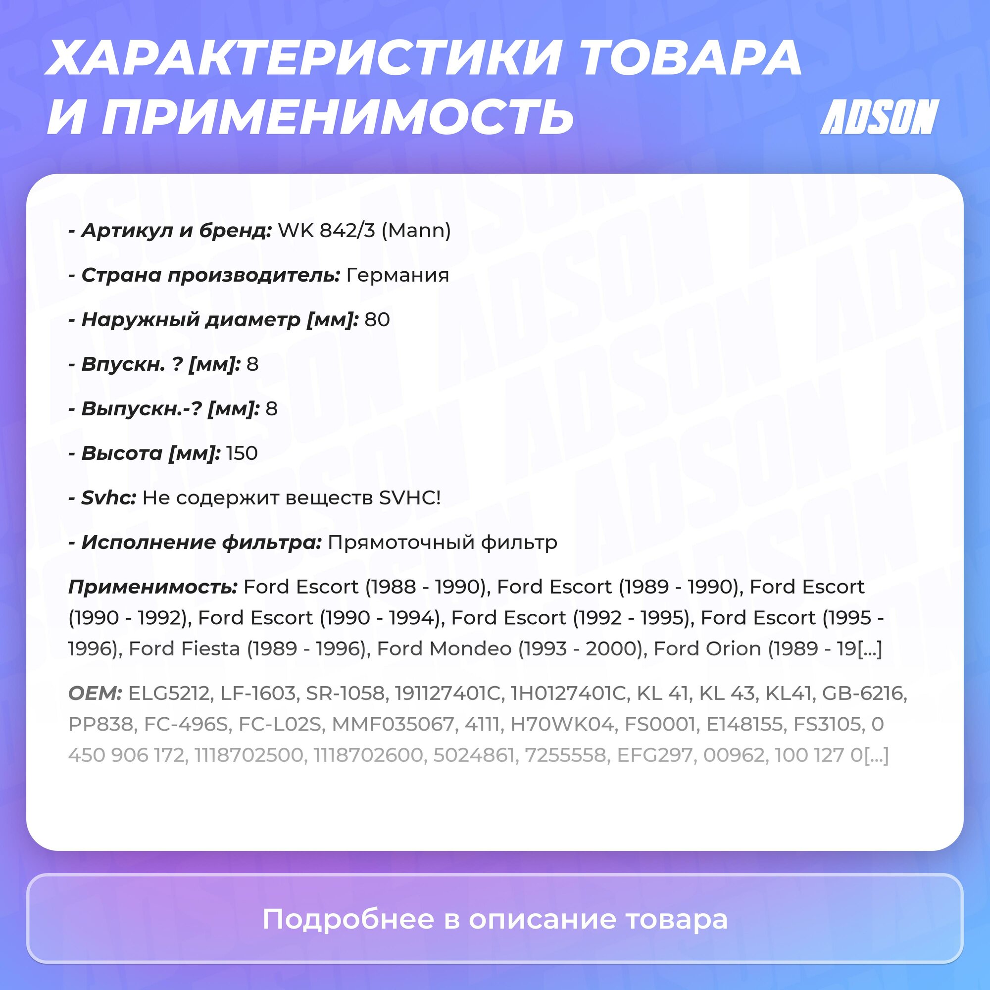| Наименование модели | WK 842/3 |