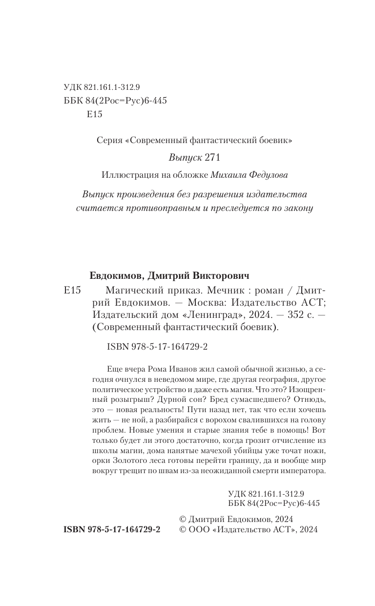 Магический приказ. Мечник (Дмитрий Евдокимов); Издательство АСТ, 2024
