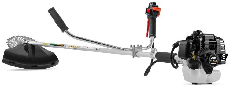 Бензокоса Caiman WX27 - это самый легкий профессиональный бензиновый триммер среди моделей аналогичной мощности! Его вес составляет всего 5 кг. Инструмент японского производства оснащен диском для среза жесткой растительности и небольших деревьев Katana Blade и триммерной насадкой с леской.Двухтактный двигатель Maruyama EE262 (Япония) с системой легкого стартаСовсем небольшой по размеру и массе мотор с низким уровнем шума и вибрации. При этом он способен противостоять нагрузкам, свойственным оборудованию для профессионального применения. Два поршневых кольца и кованый коленвал обеспечивают высокую стойкость к износу. Пуск косы осуществляется легко, даже если мотор длительное время не работал. Алюминиевая опора двигателя, в отличие от пластиковых, не обладает высокой чувствительностью к высоким температурам, до которых мотор разогревается при работе. Стальной кованый вал Solid Shaft Выдерживает большие нагрузки благодаря цельной конструкции и амортизационным втулкам по всей длине. Они снижают вибрационные колебания, а значит, нагрузку на сам вал и другие части машины. В итоге повышается ресурс инструмента.Круиз-контрольФиксация рычага газа в определенном положении увеличивает удобство работы, его не нужно удерживать пальцем в статичном положении.Резьбовое соединение ведущего вала и чашки сцепленияВ отличие от традиционного для бензокос шлицевого соединения вала и чашки сцепления, вал WX27 на конце имеет резьбу. Кроме того, он поддерживается шариковыми подшипниками. Такая система значительно увеличивает срок службы, так как значительно снижает уровень вибрации.Профессиональный редуктор Hi-Speed (Япония) Ультракомпактный (высота всего 40 мм) и легкий редуктор имеет высокую прочность и стойкость к каждодневным длительным стрижкам газонной травы. Высокопрочная коническая пара установлена на 4 подшипниках качения, что значительно повышает жизненный цикл узла.Режущее оборудование, входящее в комплект:Стальной японский диск Katana Blade для жесткой травы диаметром 230 мм.Триммерная насадка с леской диаметром 2,4 мм.