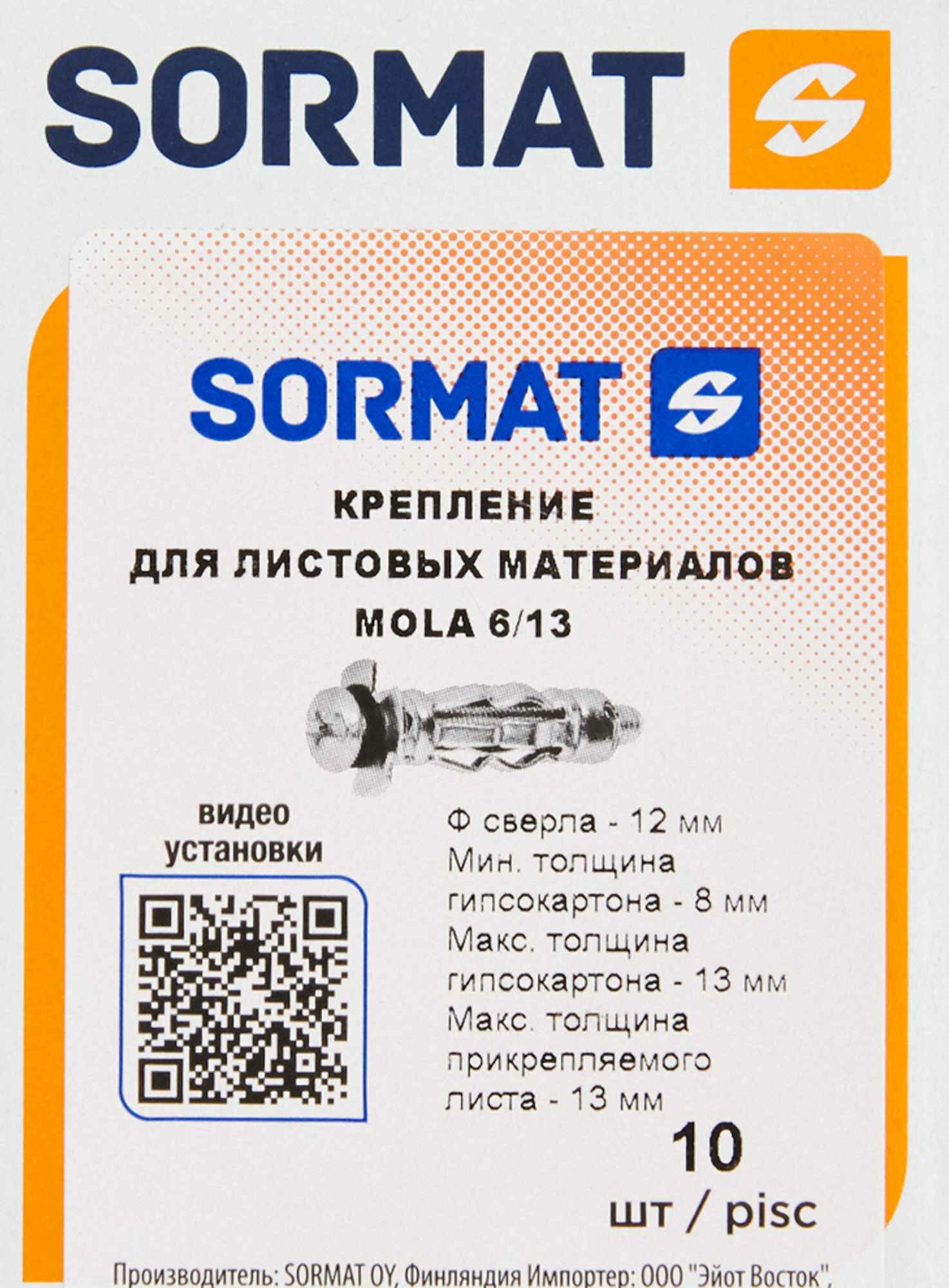 На сегодняшний день товар «Дюбель Sormat Молли 6/13 10 шт.» можно купить с кешбеком в 1 магазине: Яндекс.Маркет