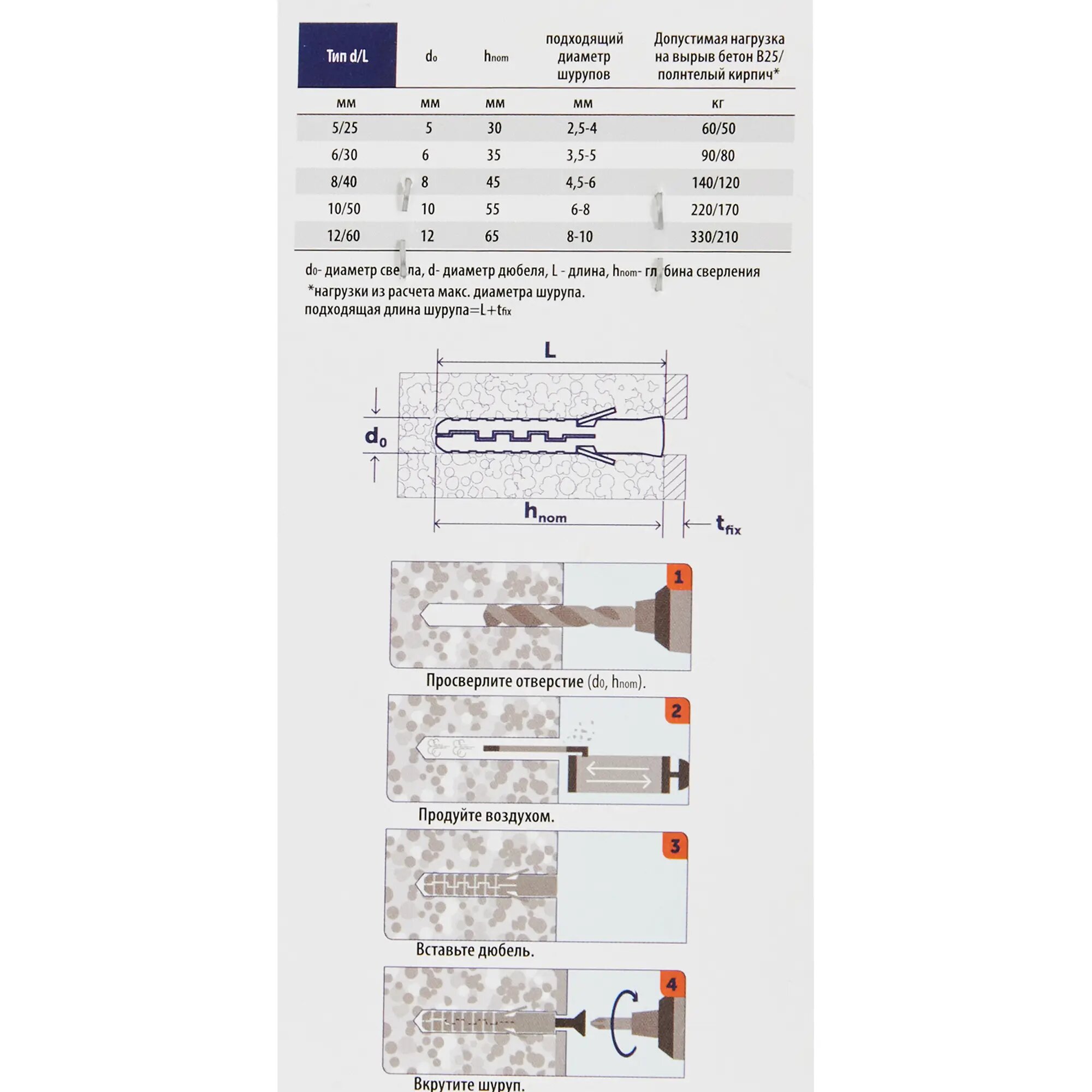 | Диаметр дюбеля (в мм) | 12 |