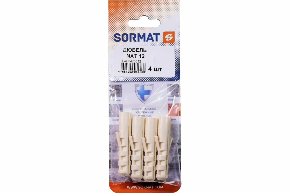 На сегодняшний день товар «Дюбель Sormat NAT нейлон 12x60 мм 4 шт.» можно купить с кешбеком в 1 магазине: Яндекс.Маркет