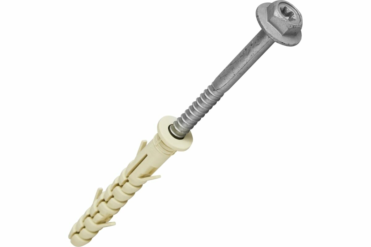 **Универсальный фасадный анкер S-UF 10x100** с шурупом для сквозного монтажа, предназначен для крепления кронштейнов систем навесного вентилируемого фасада и прочих навесных деталей, а также металлических уголков и профилей, инженерного оборудования во все виды оснований. Анкер S-UF состоит из: полиамидной гильзы диаметром 10 мм; распорного стального элемента, изготовленного из закаленной углеродистой стали с гальванически оцинкованным, горячеоцинкованным, термодиффузионным, Delta покрытием или коррозионностойкой стали методом холодного формования длиной от 80 до 240 мм