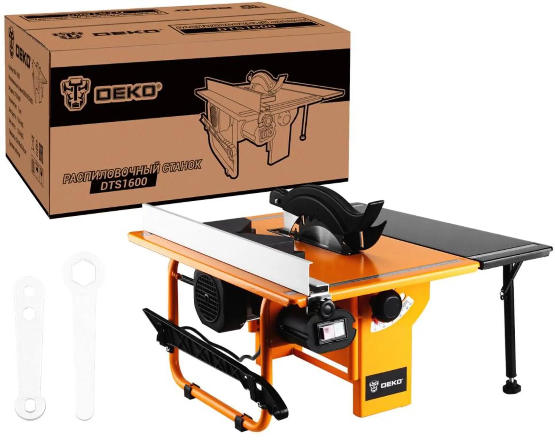 **Распиловочный станок DEKO DTS1600** предназначен для продольного и поперечного распиливания древесины, древесины с покрытием, древесностружечных плит, столярных плит и подобных им материалов на основе дерева. Круглые заготовки разрешается распиливать только с применением соответствующего зажимного приспособления, так как они могут провернуться из-за вращающегося полотна пилы.