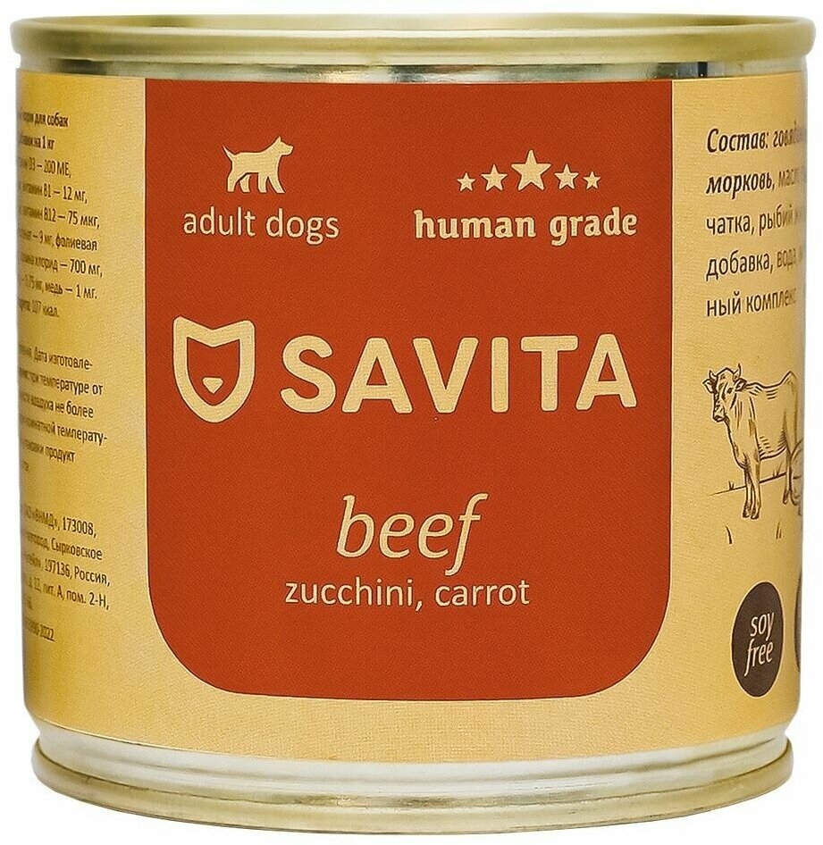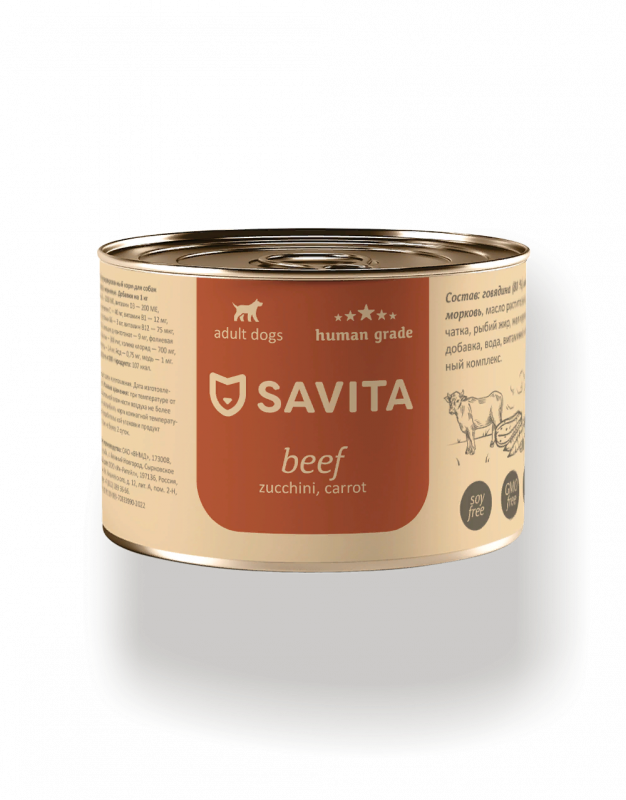Беззерновые консервы класса holistic Savita - это сбалансированные натуральные рационы для собак с высоким содержанием мяса, обогащенные витаминно-минеральным комплексом