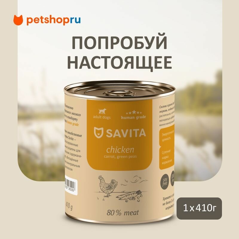 На сегодняшний день товар «SAVITA консервы для собак (Курица морковь и зелёный горошек 410 г.)» можно купить с кешбеком в 1 магазине: Яндекс.Маркет