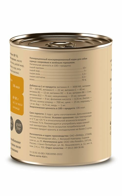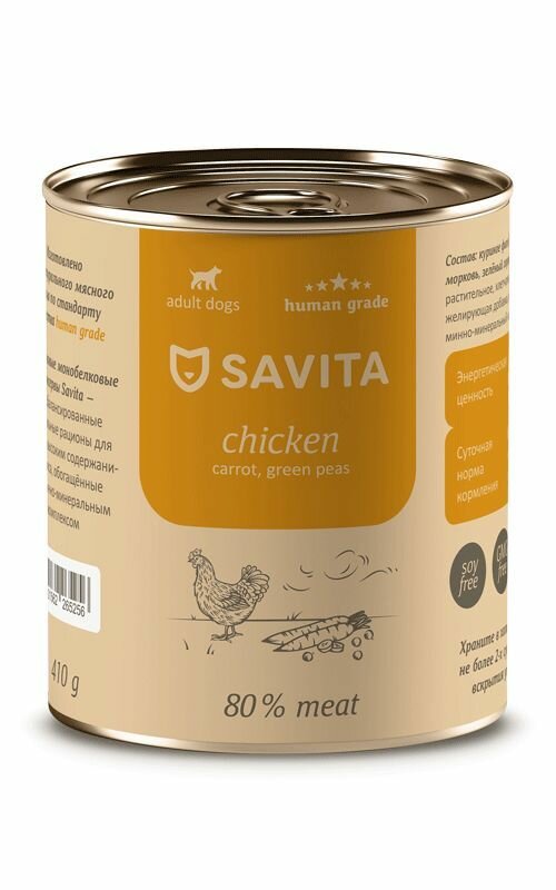 SAVITA консервы для собак (Курица морковь и зелёный горошек 410 г.)