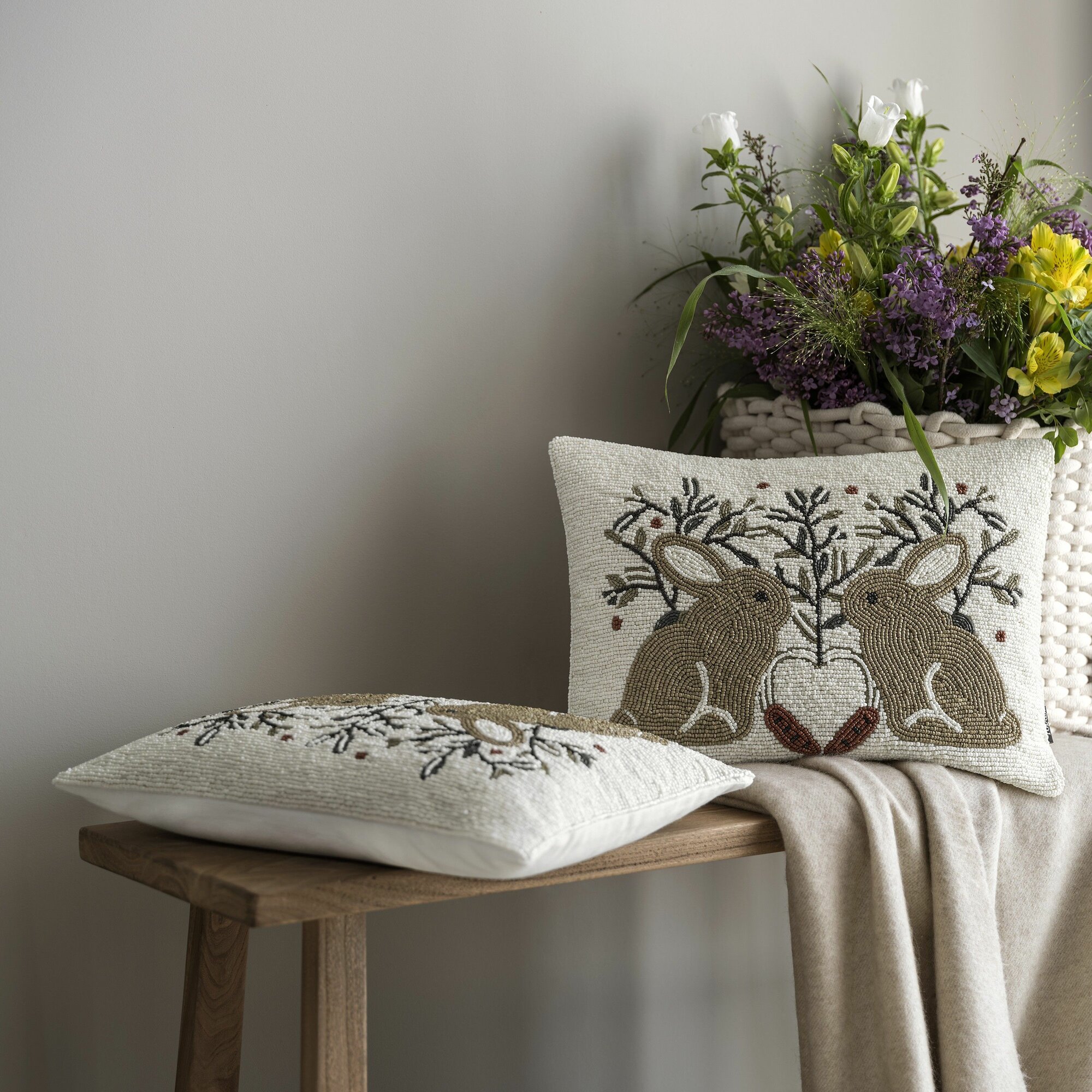 Яркая подушка «Эврар» входит в пасхальную коллекцию декора для дома от Togas. Наволочка этой модели изготовлена из высококачественного натурального хлопка.Хлопковый текстиль гигроскопичен, прекрасно пропускает воздух и не накапливает статическое электричество. Внутри изделия – искусственный лебяжий пух, высококачественное микроволокно, мягкое, нежное и одновременно упругое. Наполнитель эластичен и быстро восстанавливает свою форму после сжатия, поэтому подушка не деформируется.«Эврар» производит впечатление контрастной вышивкой бисером в сливочно-кофейных тонах на пасхальную тему. На сливочном фоне выделяются симпатичные зайчата, созданные из бисера кофейного цвета, и красные морковки. Несколько таких нарядных подушек создадут приподнятое праздничное настроение. Эту модель можно дополнить подушкой «Равера» из той же коллекции, которая также расшита разноцветным бисером.