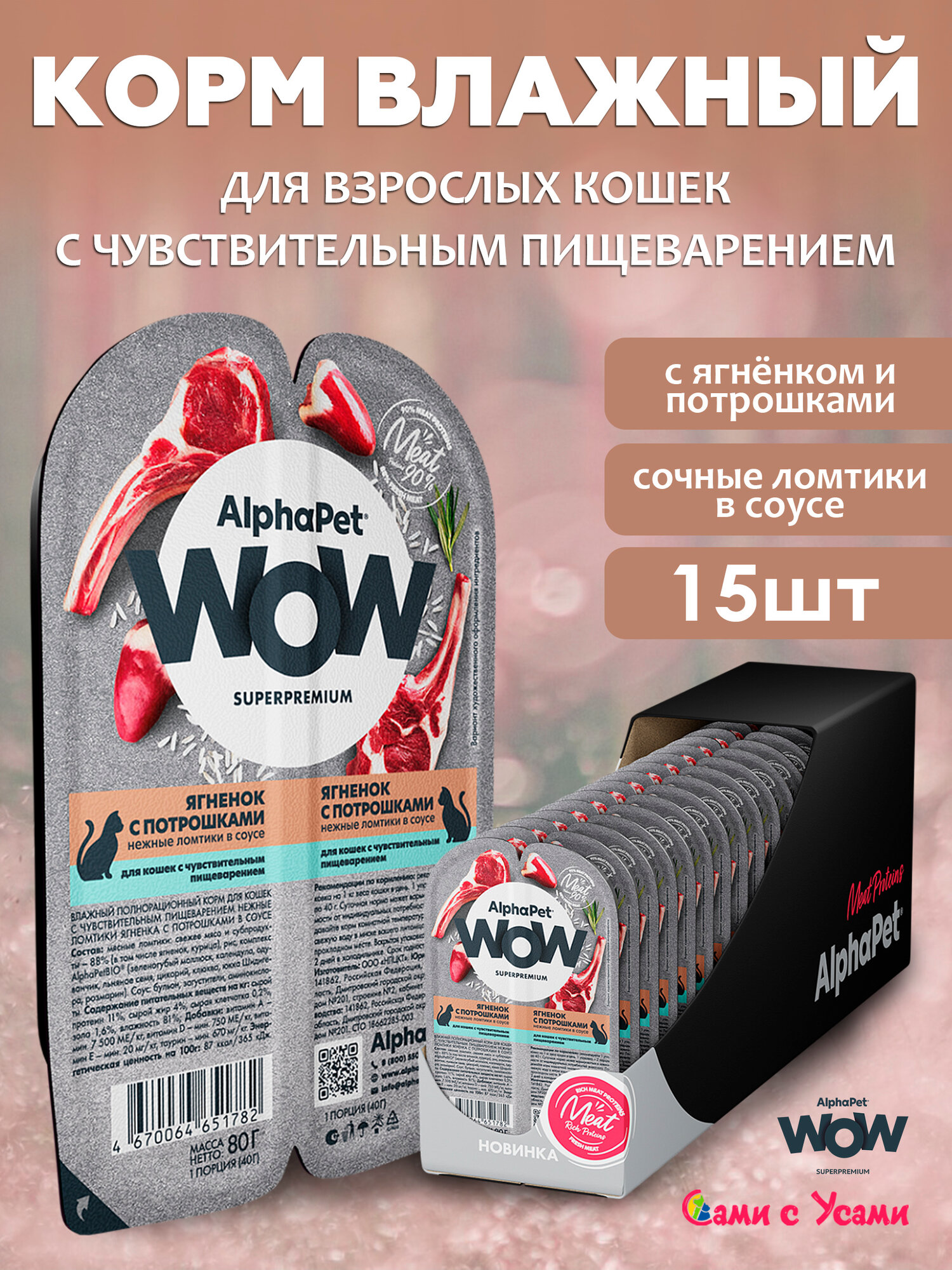 Здоровый и активный питомец – главная задача каждого хозяина. Команда AlphaPet® создает и производит полезные корма высшей категории качества Holistiс, давая возможность каждому владельцу быть уверенным в правильном выборе кормления для своего животного. AlphaPet® WOW - линейка качественного питания по доступной цене для животных, владельцы которых хотят быть уверены в выборе лучшего качества рациона по разумной цене. Максимально открытый и понятный состав кормов, приготовленных по инновационной технологии из свежего мяса и с содержанием более чем 90% мясного белка!Линейка влажных кормов AlphaPet так же содержит:Ингредиенты качества Human GraidУникальный комплекс AlphaPetBio Рис - для чувствительного пищеварения*Не содержит ГМО искусственных красителей, ароматизаторов, консервантов, пшеницу, кукурузу и глютен.