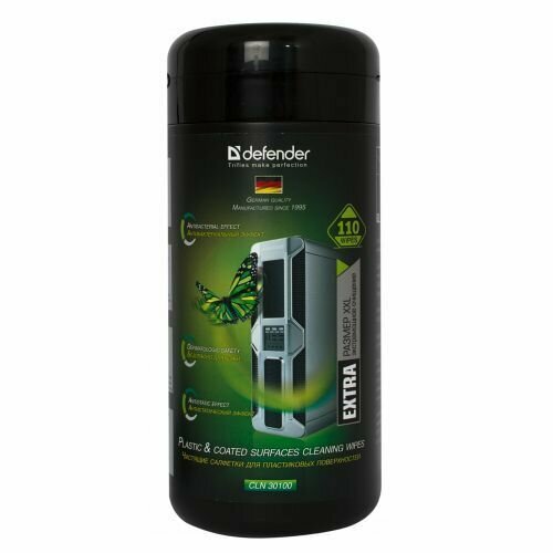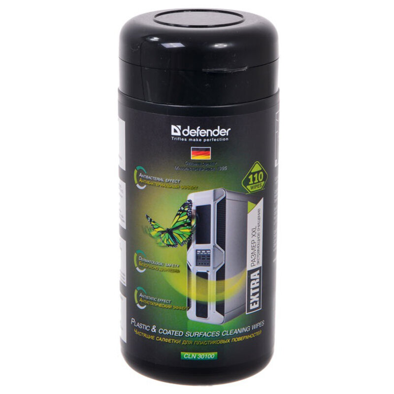 Влажные универсальные салфетки Defender 30100 обладают антистатическим и антибактериальным и дезинфицирующим действием. Их можно использовать для любых поверхностей, даже для мониторов и экранов, и любых материалов, например, пластик, дерево или металл. Салфетки скатаны в рулон, чтобы максимально уменьшить их высыхание, и уложены в тубу, по 110 штук в одной упаковке.