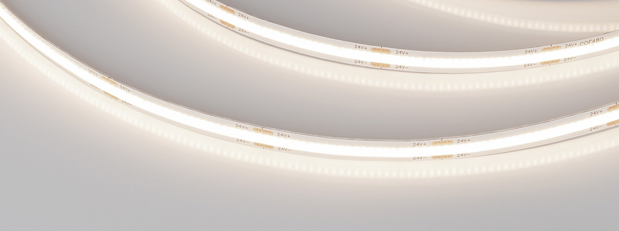 Светодиодная лента COB-X480 (монтажная бобина 20 м), открытая IP20. Светодиоды CSP, 480 шт/м (9600 шт на 20 м), белая плата, ширина 8 мм, скотч 3М. Цвет ТЕПЛЫЙ 3500K, цветопередача CRI>90, угол 160°. Питание 24 В, мощность 10 Вт/м (200 Вт на 20 м). Размеры 20000х8х1.8 мм. Мин.отрезок 50 мм., 24 светодиода. Цена за 1 м.