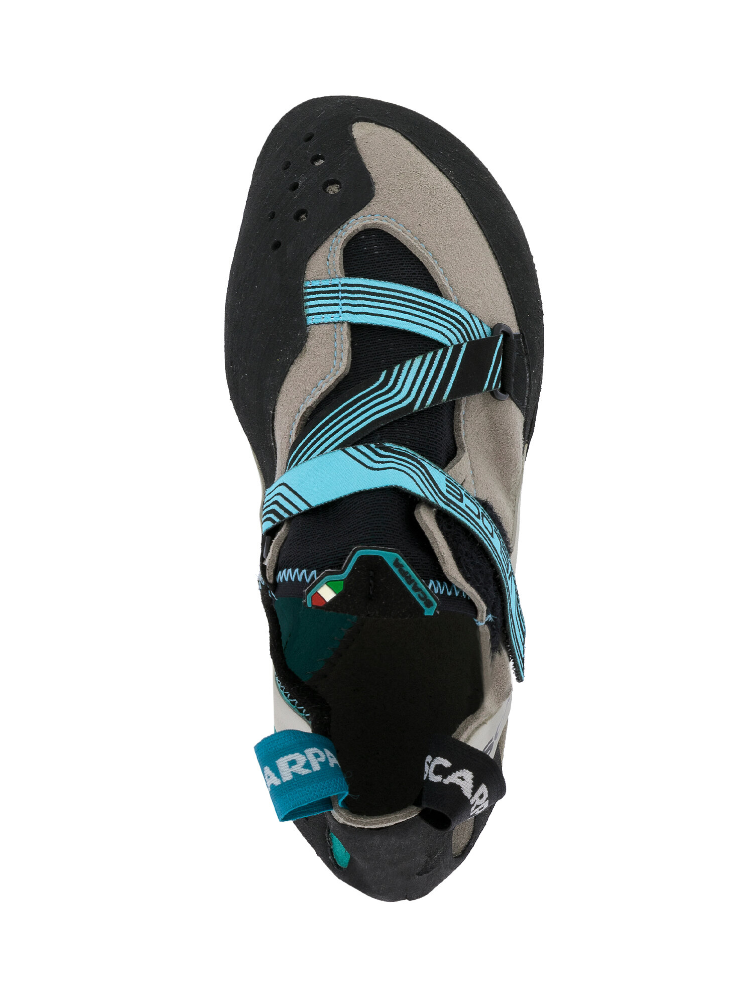 Женские скальные туфли Scarpa Veloce идеально подходят для современного скалолазания в помещении. Имеют мягкую посадку, как в перчатках, а также дополнительное пространство в носке для максимального комфорта. Верх изготовлен из дышащей и хорошо моющейся микрофибры. Универсальный крой подойдет спортсменам с большим подъёмом стопы. Особенности: Технология DTS-TENSION SYSTEM - специально разработанная система натяжения для ещё большей чувствительности и точности при постановке ног. Сохраняет форму скальных туфель на протяжении всего срока службы. Идеально адаптируется к динамике стопы во время движения и концентрирует силу в области большого пальца. Работает в сочетании с новой минималистичной системой SRT(слой ультрамягкой эластичной резины M50 на носке) и специальной конструкции пятки (PAF). PAF SISTEM - улучшенная система строения пятки, позволяющая легче зацепляться и висеть на пятке. Резина M50 - cамая мягкая резина, которая позволяет идеально приспосабливаться к естественной форме стопы и пальцев ног. Разработана совместно с Davos®. Резина S72 - резина с высоким коэффициентом трения, разработанная и испытанная компаниями SCARPA и Davos®. Этот мягкий состав имеет рейтинг по шкале Шора 72, что делает его легко адаптируемым к любой поверхности и обеспечивает превосходный механический эффект. S72 одинаково хорошо работает как на камнях, так и на зальных стенах.