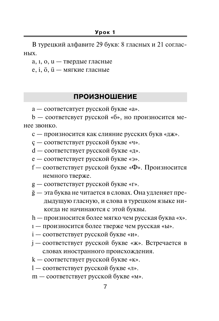 Данный самоучитель поможет в короткий срок освоить лексический и грамматический минимум начального уровня и простые формы разговорной речи. Курс состоит из 12 уроков. В каждом уроке представлены основные грамматические темы и полезная лексика, необходимая в повседневном общении. Для отработки практических навыков предлагаются упражнения с ответами. В конце книги вы найдете полезные приложения и русско-турецкий словарь. Книга адресована всем, кто хочет в краткие сроки овладеть основами турецкого языка.