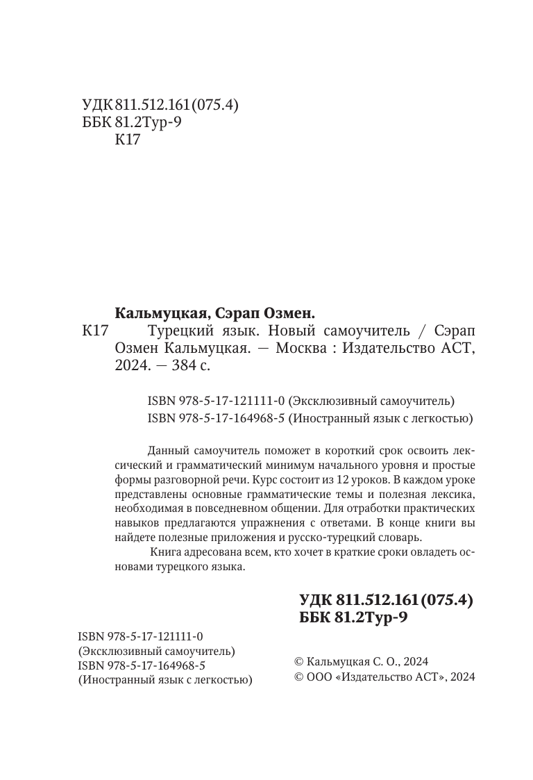Книга: Турецкий язык (Сэрап Озмен Кальмуцкая); АСТ, 2024