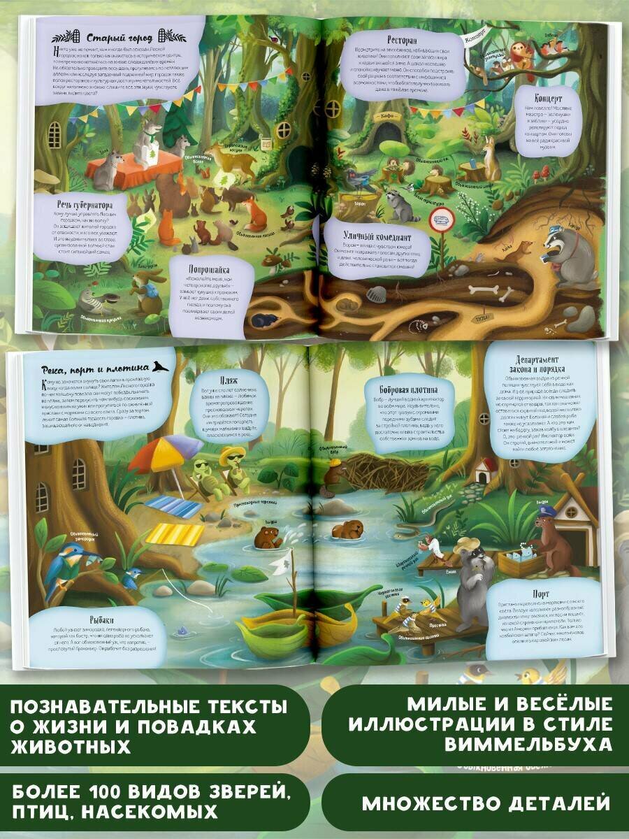 Добро пожаловать в Лесной городок! Жители городка всегда рады гостям и хотят провести для вас самую интересную экскурсию! Вы сможете послушать речь губернатора на главной площади, вместе с выдрой следить за порядком на речной плотине, побывать в поместье старого барсука И многое другое! Отправляйтесь с нами в Лесной городок, чтобы узнать о его жителях и послушать их истории. А если вы вдруг потеряетесь, вам нечего бояться в нашей книге есть удобная карта.