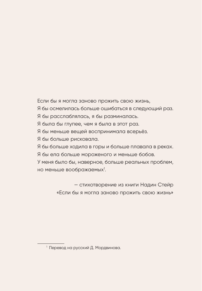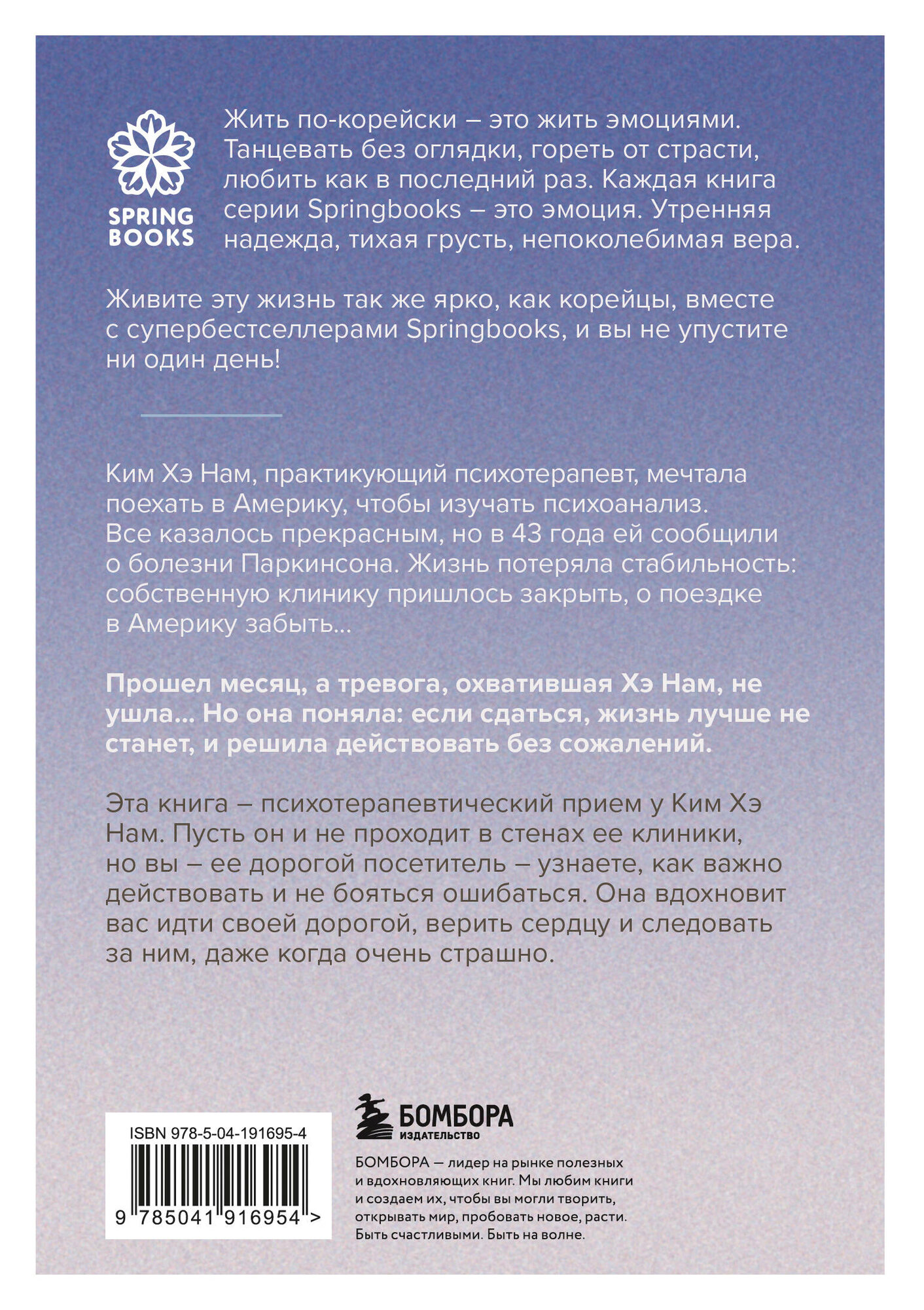 Эта книга — психотерапевтический прием у Ким Хэ Нам. Пусть он и не проходит в стенах ее клиники, но вы — ее дорогой посетитель — узнаете, как важно действовать и не бояться ошибаться. Она вдохновит вас идти своей дорогой, верить сердцу и следовать за ним, даже когда очень страшно.