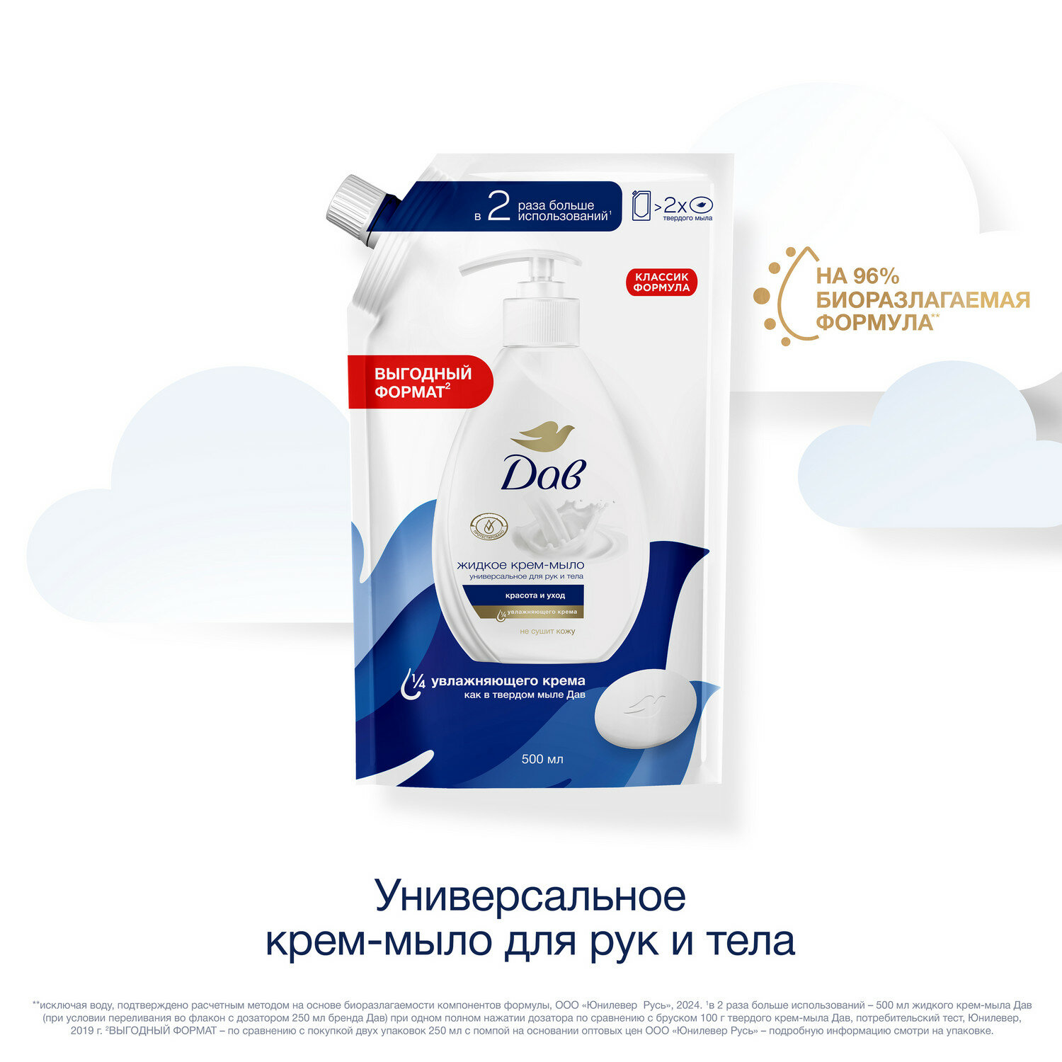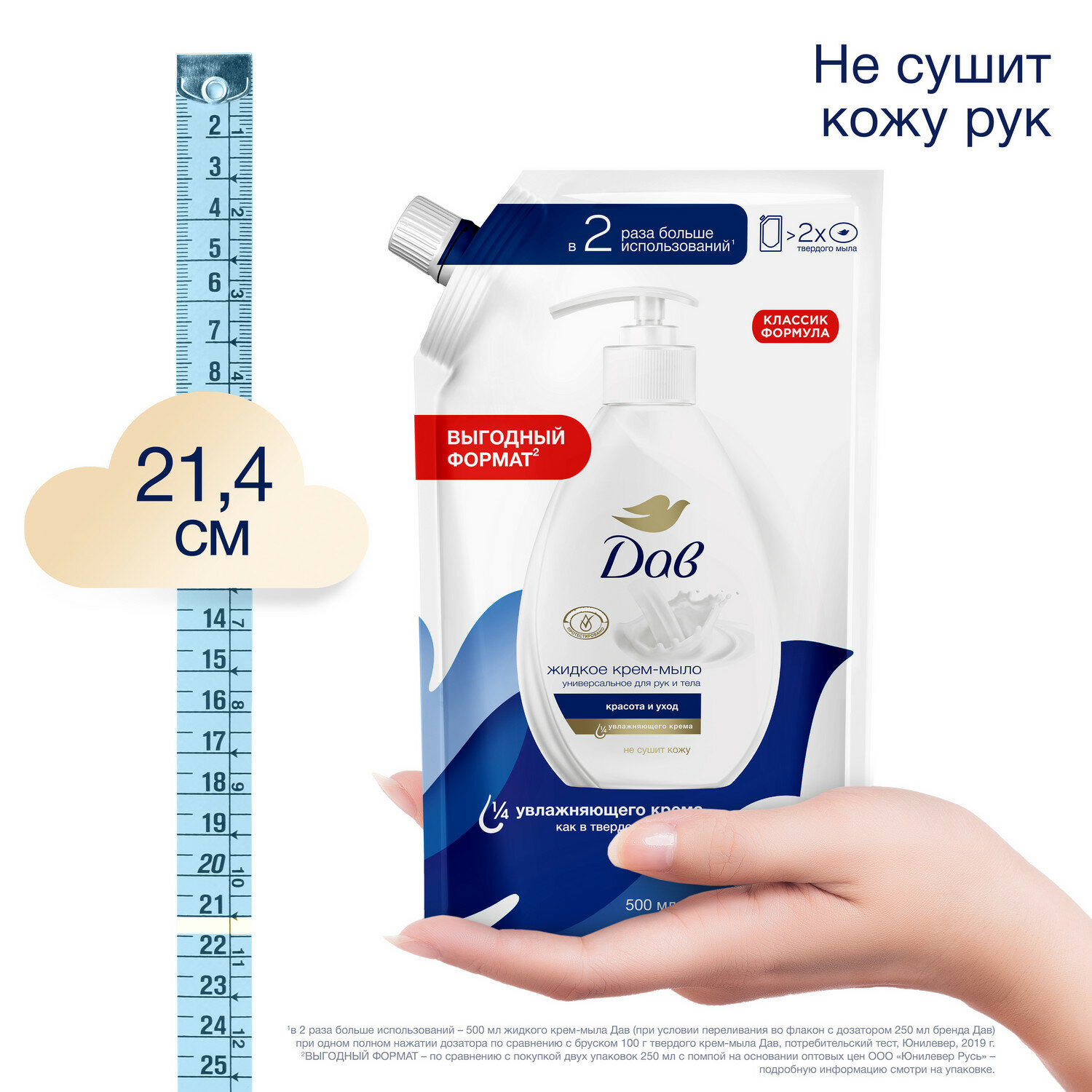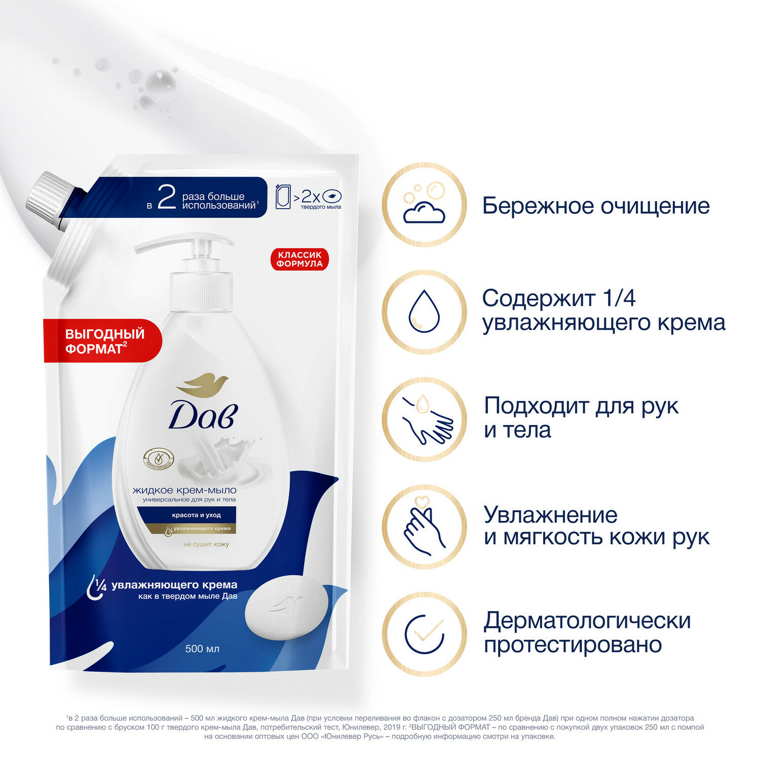 Жидкое мыло для рук Dove Красота и уход с 1/4 увлажняющего крема не сушит кожу крем мыло 500 мл