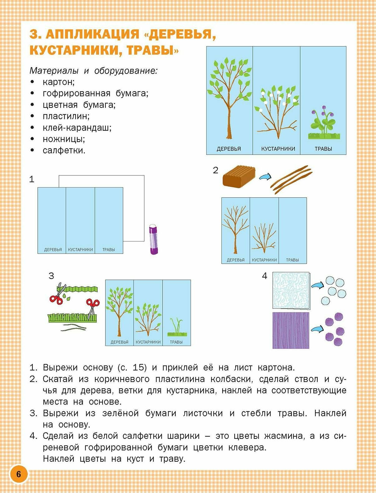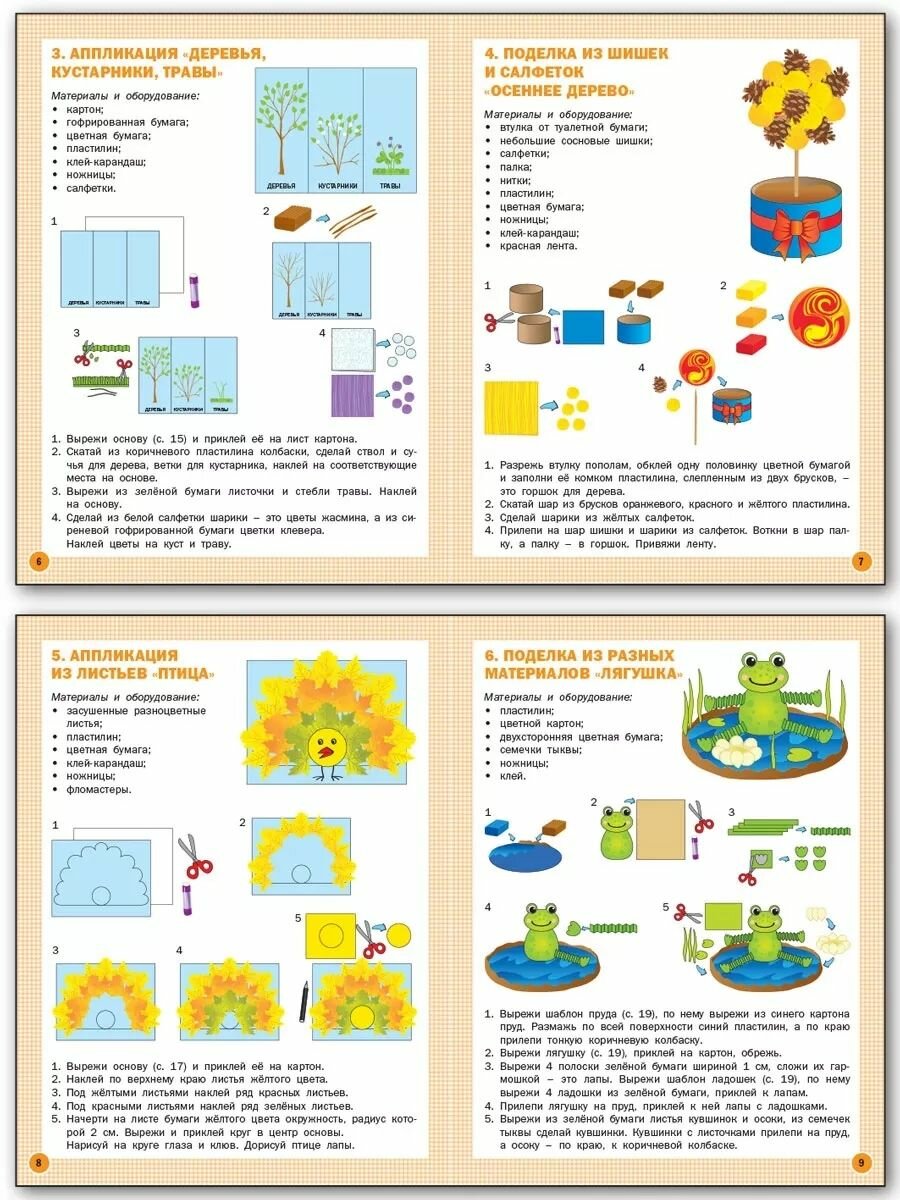 В рабочую тетрадь включены задания, распределенные по временам года: осень, зима, весна. Они рассчитаны на 34 занятия. К каждому занятию прилагается вступительная беседа по теме, указаны материалы, изложен ход работы. В приложении имеются красочные основы поделок, шаблоны и детали изделий.