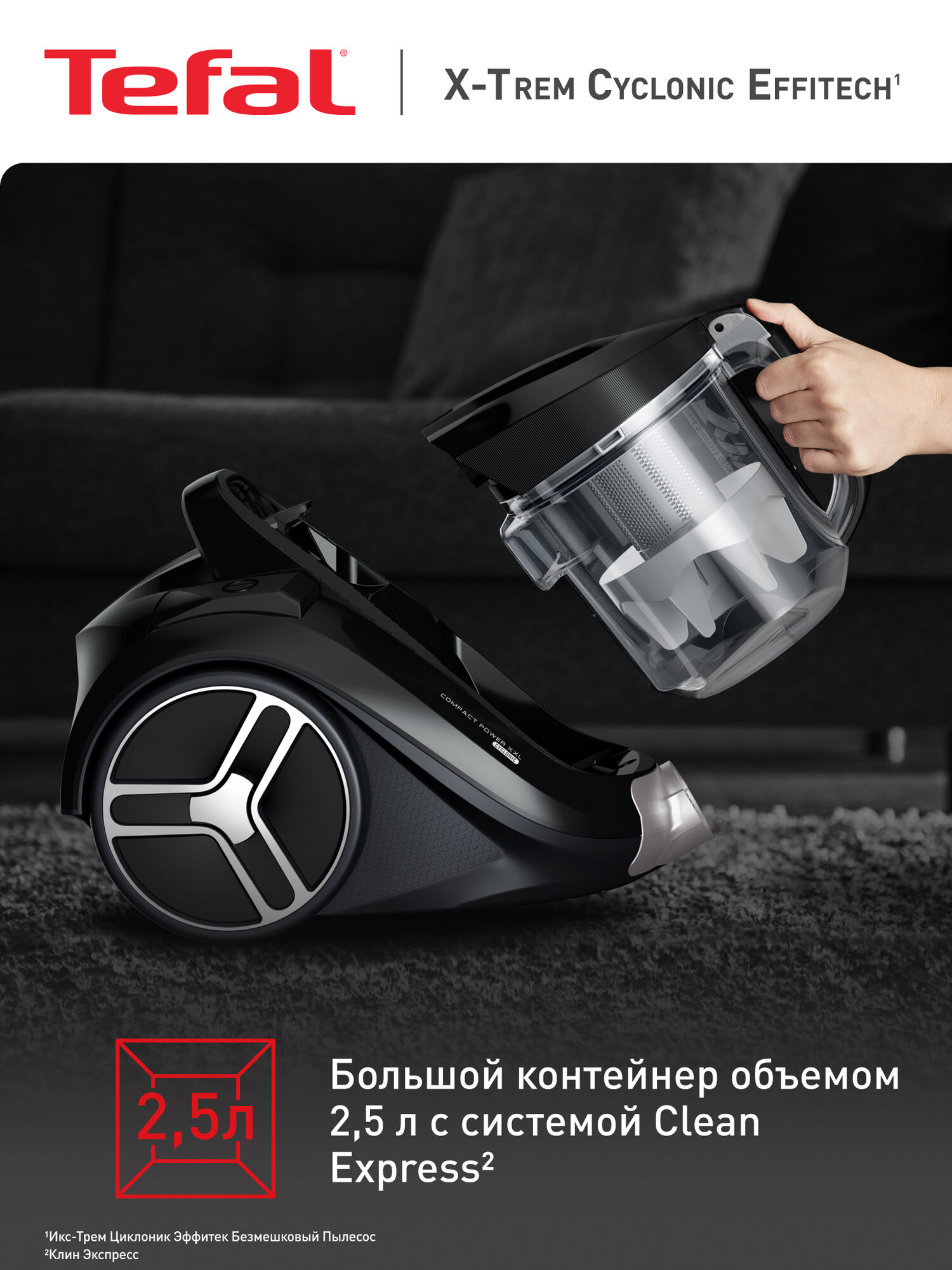 Пылесос с контейнером Tefal X-Trem Cyclonic Effitec TW7C89EA