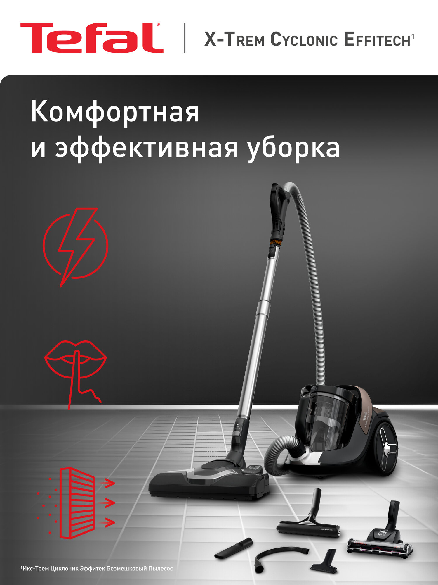 Пылесос обеспечивает ту же производительность, что и модели мощностью 2100 Вт, гарантируя вам впечатляющий результат уборки.