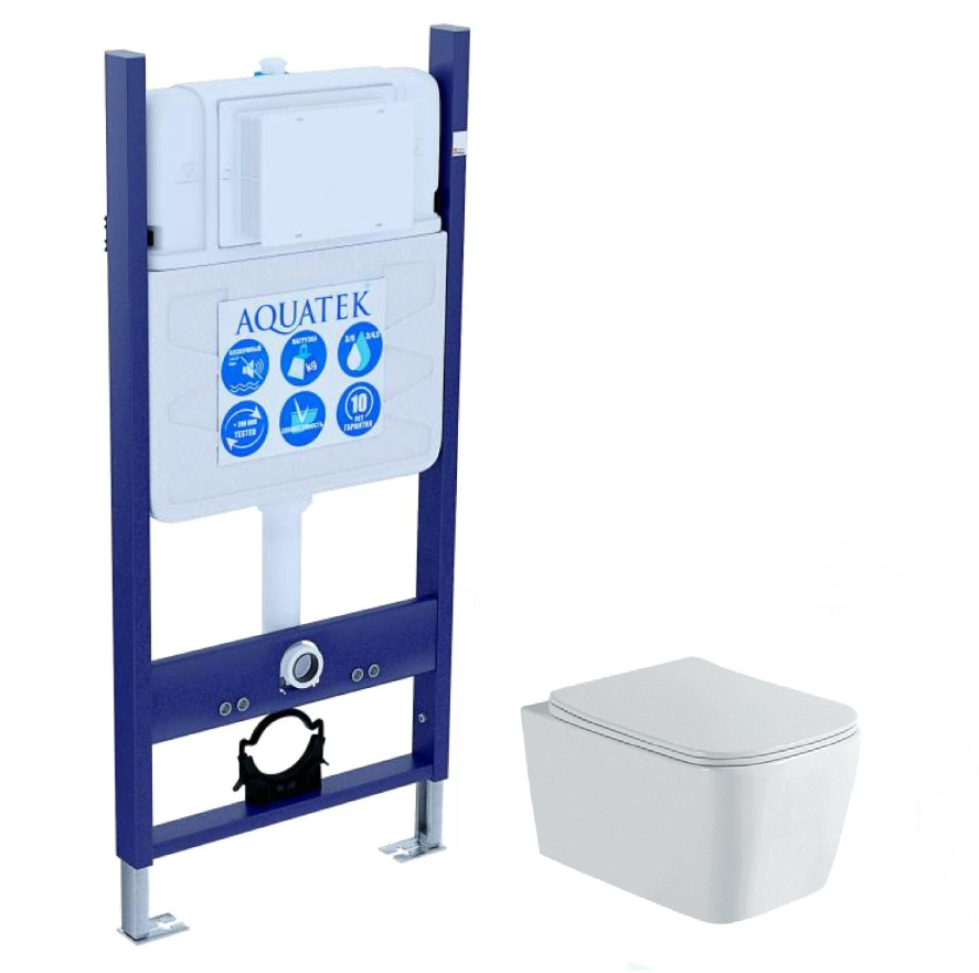 Сервис сравнения цен СкидкаГИД предлагает сравнить цены на товар «Подвесной унитаз с инсталляцией Акватек Либра New SET AQUATEK ЛИБРА N-14 cm безободковый, с крышкой микролифт, белый»
