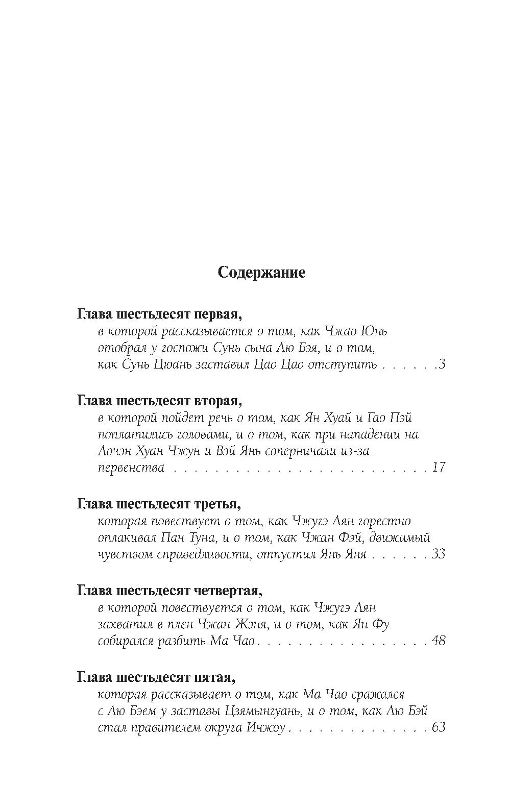 Сочетая исторические хроники с легендами и мифами, Ло Гуань-чжун сплетает масштабное полотно с десятками сюжетных линий и сотнями действующих лиц. Кровопролитные сражения и закулисные битвы за власть, героические подвиги и любовные приключения — и все это на фоне одного из самых драматичных моментов в истории Китая, когда единая Ханьская империя распалась на три независимых государства, беспрерывно воюющих друг с другом.