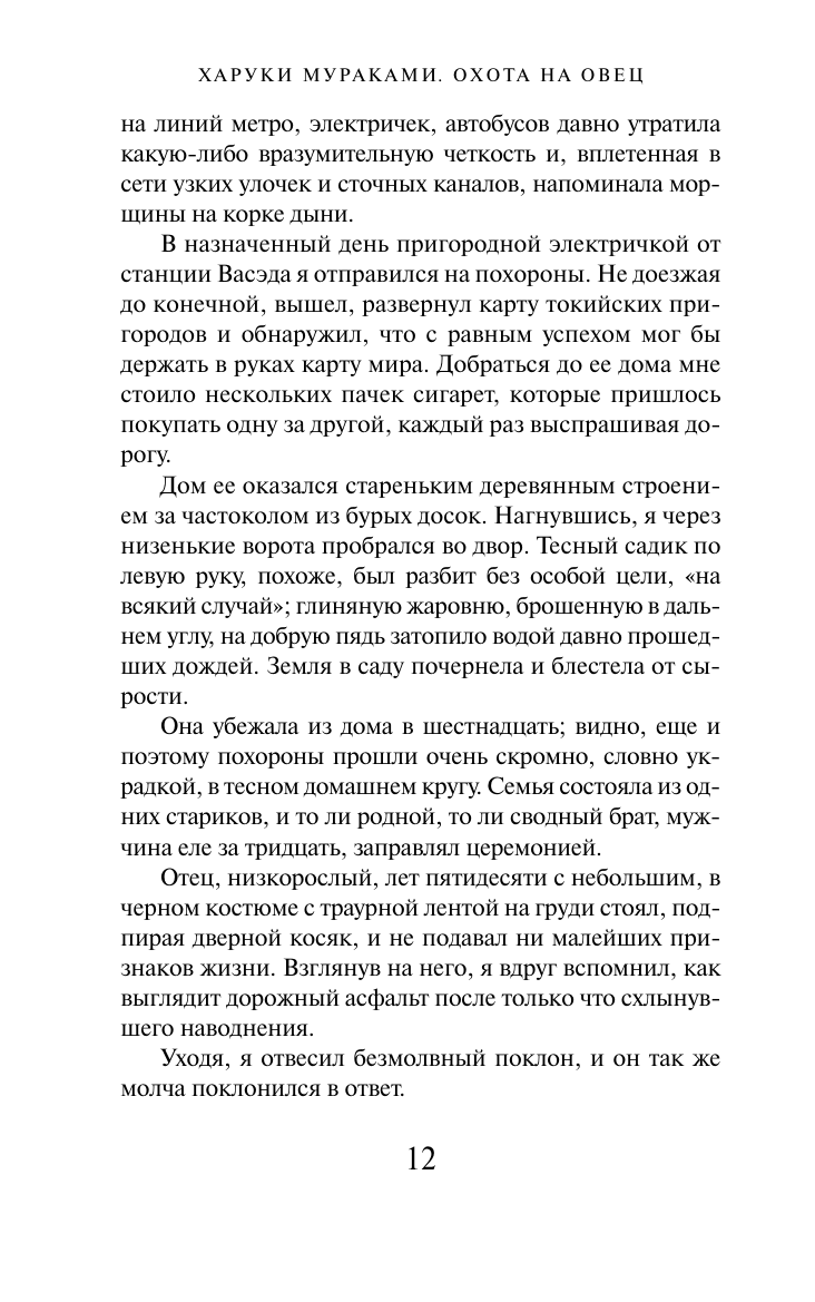 «О ее смерти мне сообщил по телефону старый приятель» Так начинается «Охота на Овец» пожалуй, самое странное путешествие по закоулкам современного мира и человеческого сознания, придуманное легендой современной литературы японским писателем Харуки Мураками. Этот роман стал абсолютным мировым бестселлером: «охота на овец» в наших душах не закончится никогда! Итак, позвоните в полицию, спросите адрес и номер телефона семьи, затем позвоните семье и узнайте дату и время похорон. А после, в назначенный день, садитесь в пригородную электричку от станции Васэда. И надейтесь, что охота будет удачной