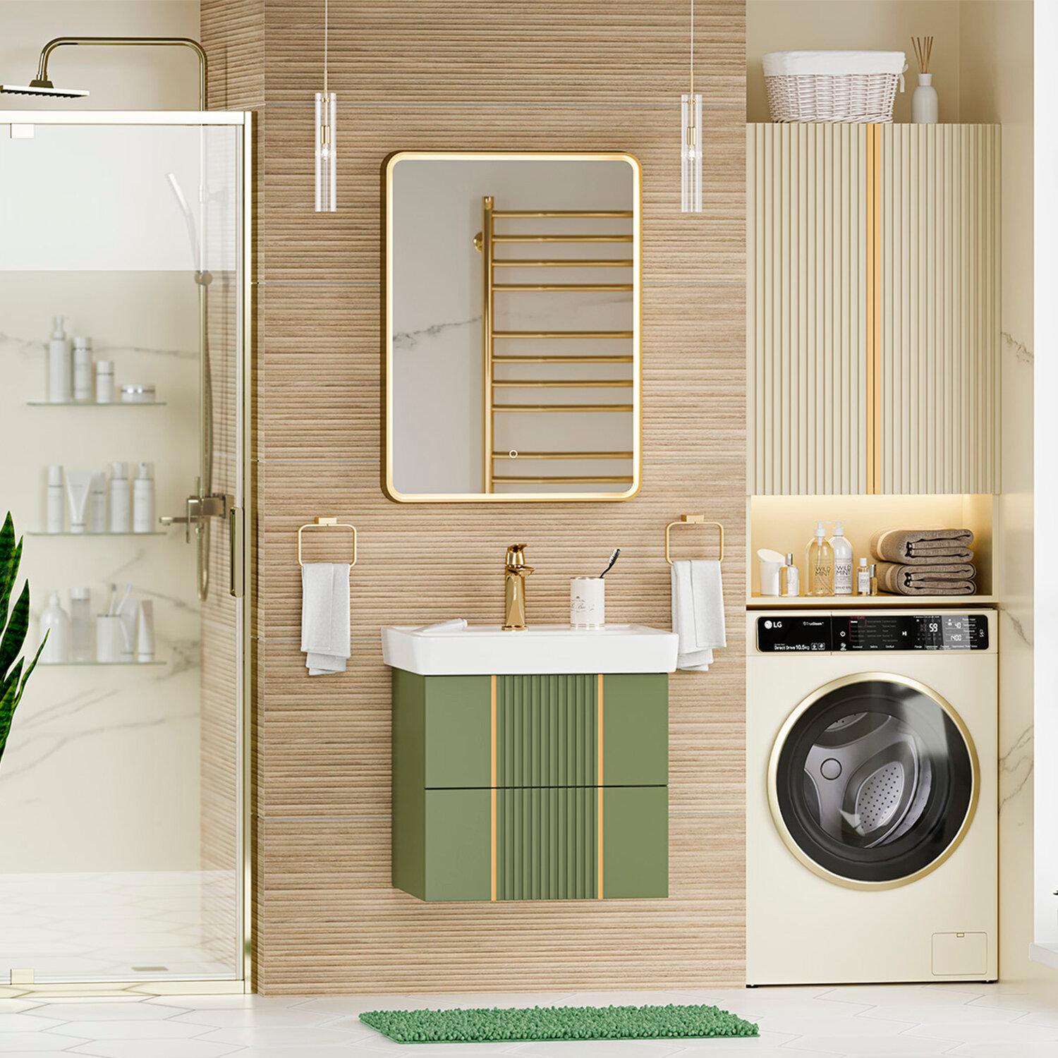Тумба с раковиной Brevita Vega 60 подвесная зеленый/золото Vega VEG-09060-0802Я