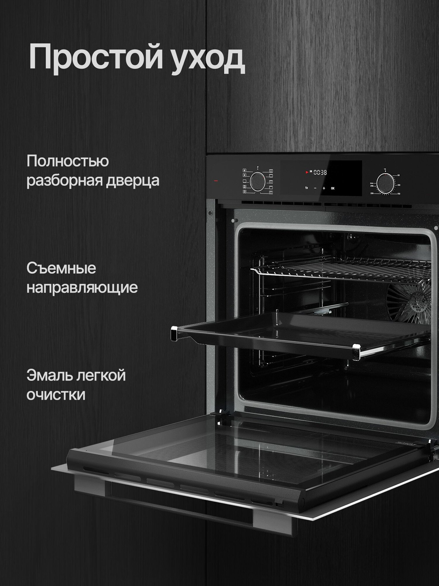 Разборная дверцаЛегкость в чистке и обслуживании духовки.