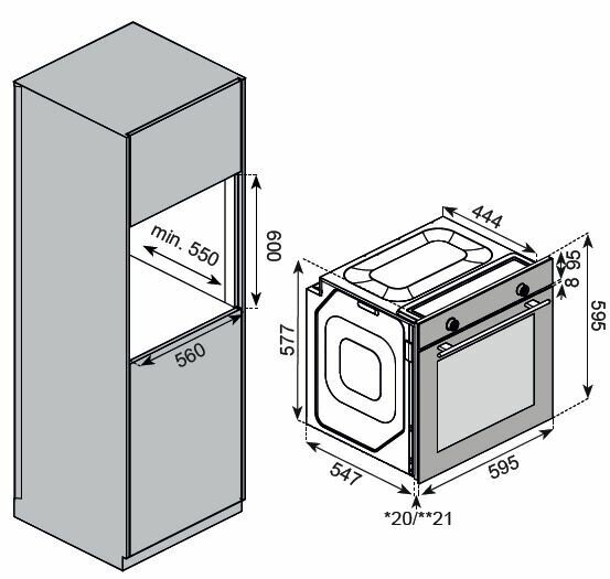 | Размер ниши для встраивания (ВхШхГ), мм | 600х560х550 |
